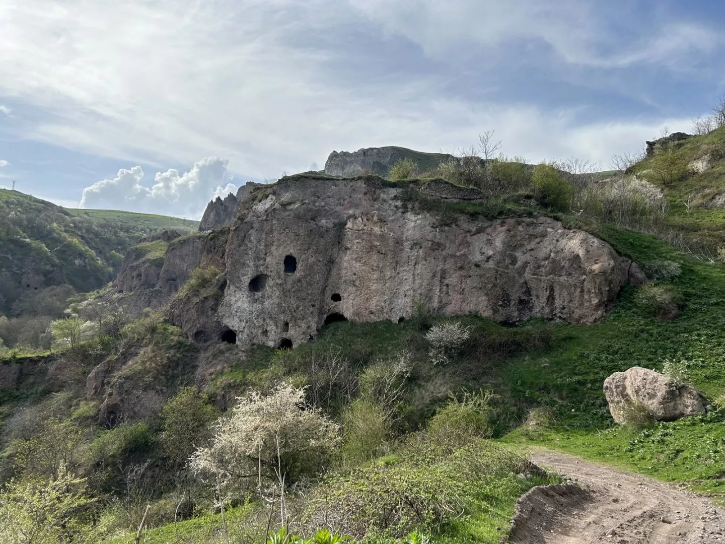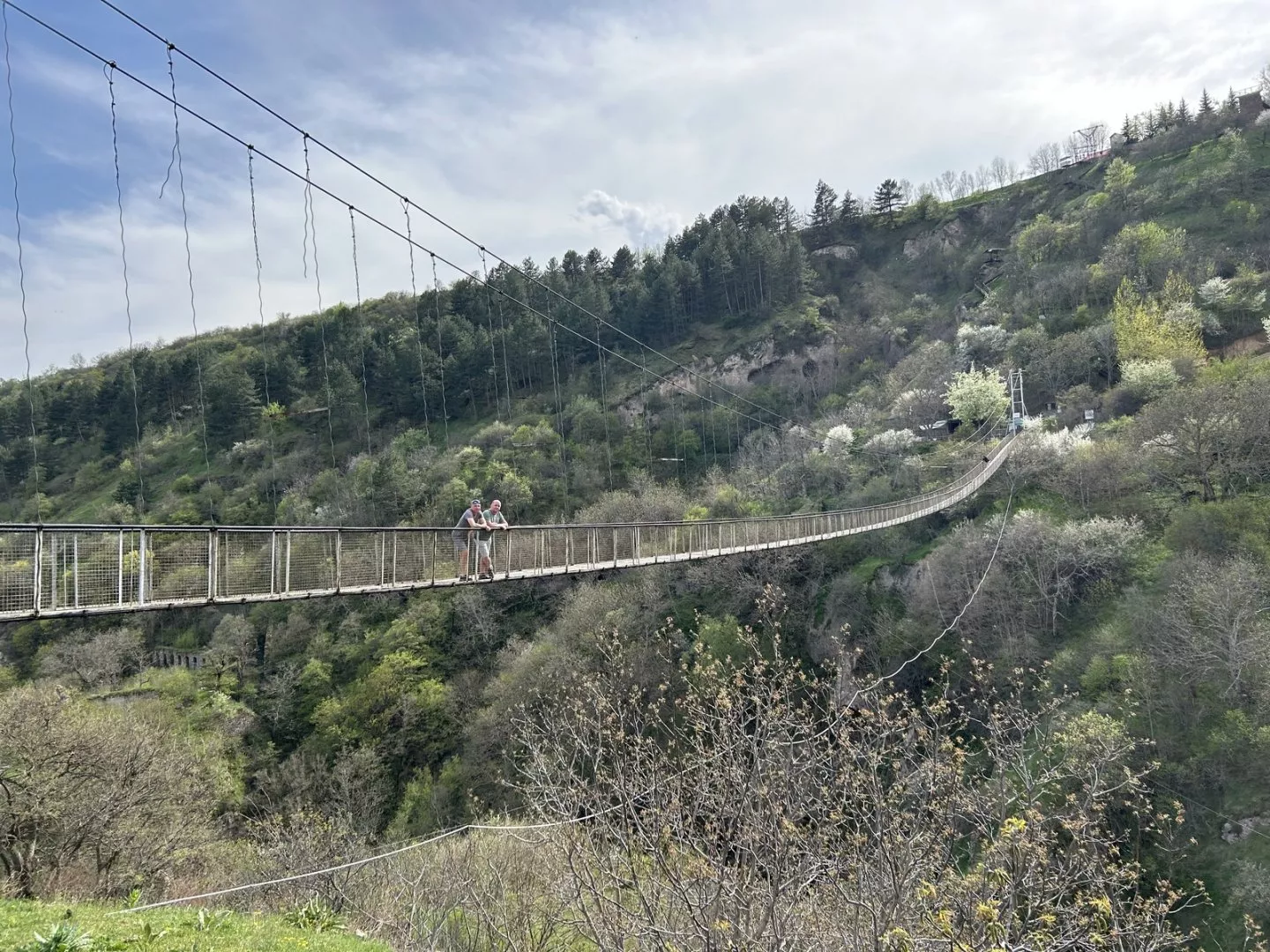 Cílem byla malá vesnice jménem Khndzoresk, kde se nachází také skalní město. Poslední 3 kilometry byly nesmírně dobrodružné. Po polní cestičce, kde si řidič musel dávat opravu pozor, aby vybral tu nejmělčí díru, jsme dorazili na parkoviště. Odtud se šlo krátkou procházkou zakončenou 451 schody do údolí. V údolí se nacházel lanový most. Jedná se o velice fotogenické místo.