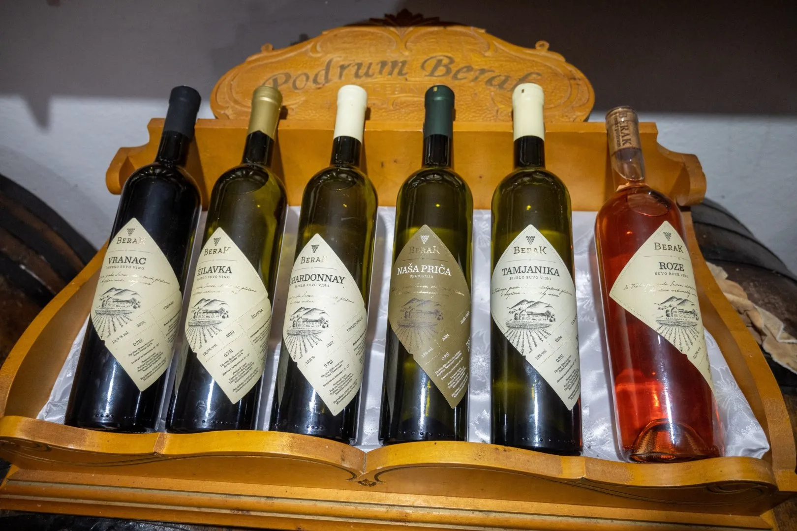 Vinarija Berak v Trebinje je rodinné vinařství s kořeny hluboko v historii tohoto hercegovinského města. Rodina Berak patří mezi nejstarší na zdejším území a pěstování révy tu prakticky nezmizelo od jejich příchodu v 17. století, kdy se usadili pod hercegovinským sluncem a mezi vinicemi. Dnes vinařství vede Aleksandar Berak, který kombinuje tradiční znalosti předků s moderním přístupem k výrobě vína a věnuje se jak běžným odrůdám jako Vranac či Žilavka, tak i méně známým starobylým typům, ze kterých původně vznikalo typické rujno víno z prastarých odrůd Surca, Kadaruna a Plavky, což dává vínům z tohoto podniku osobitý charakter, spjatý s historií a teritoriem Trebinje.