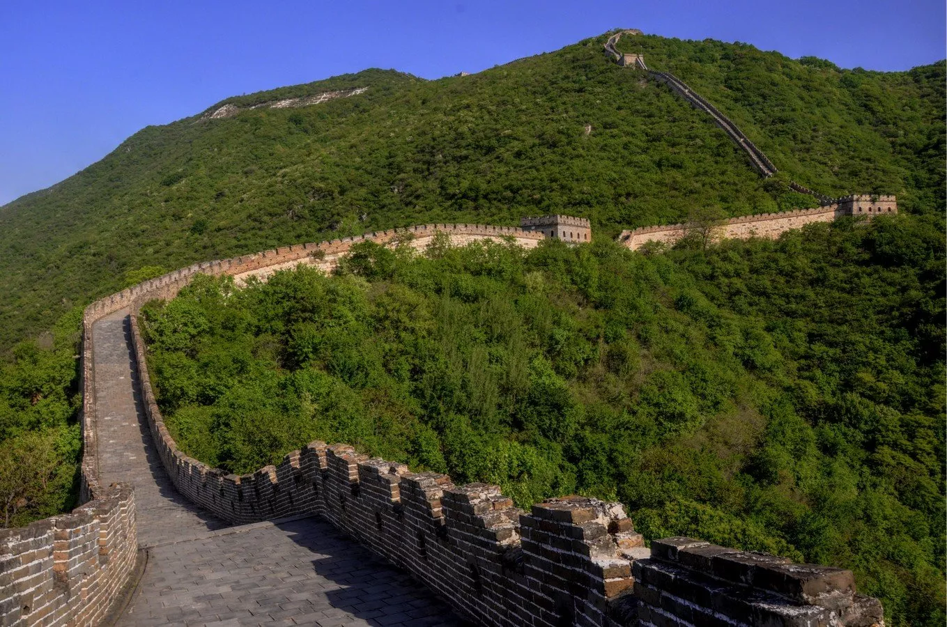 Mutianyu, část Velké čínské zdi, je jednou z nejkrásnějších a nejméně přeplněných částí této monumentální stavby. Velká čínská zeď, jejíž současná podoba byla dokončena za dynastie Ming mezi 15. a 17. stoletím, sloužila jako obranný systém proti mongolským nájezdům. I když se zdá, že se táhne jako jednolitá linie, ve skutečnosti je zeď rozdělená do několika částí, protože podobná opevnění byla budována už v dřívějších dobách.