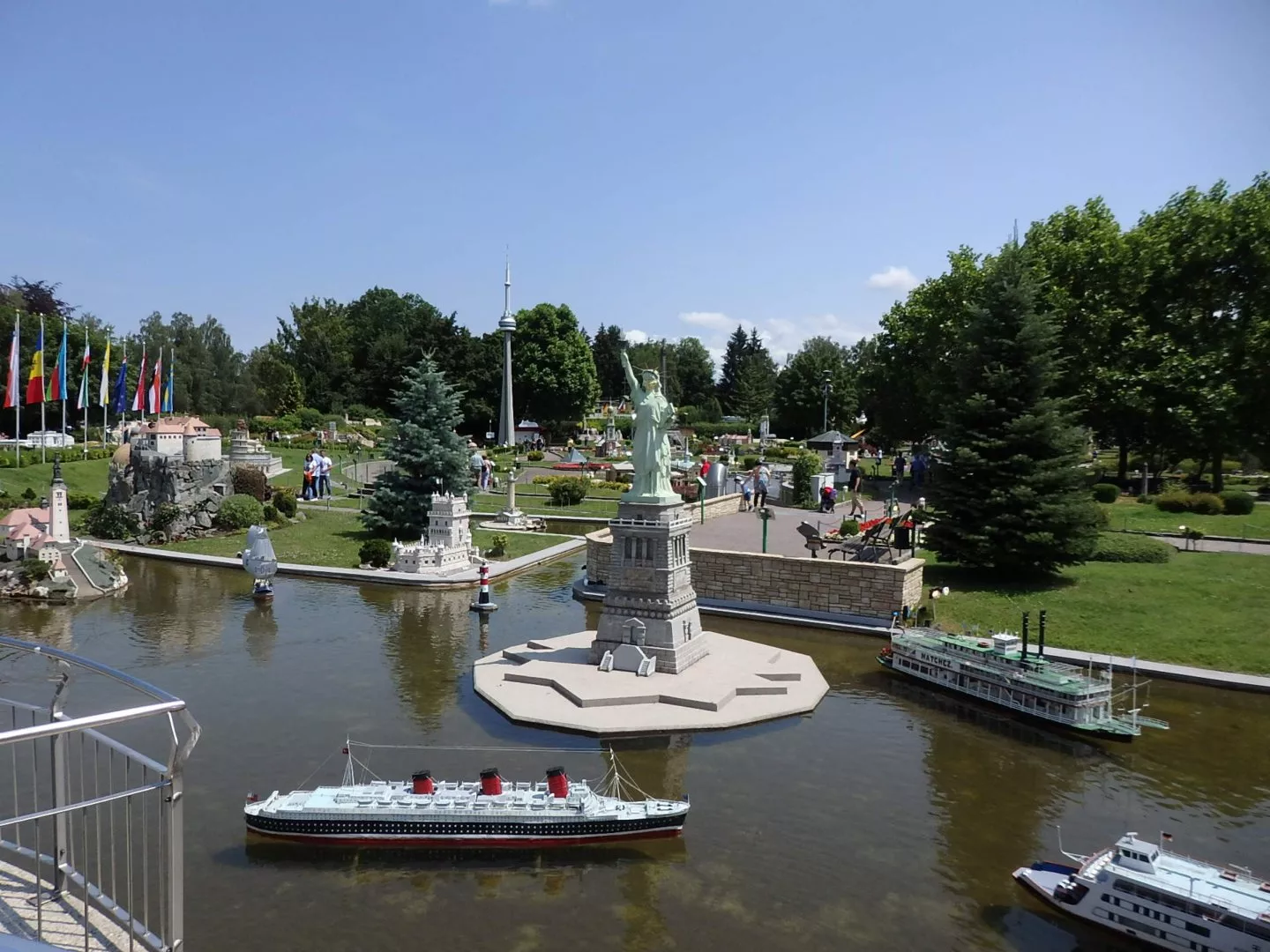V celém areálu je několik menších vodních ploch či kanálů, kde mimo živých rybiček pluje i spousta lodí. Mimo jiné replika lodi Queen Mary, která je však v jiném měřítku, protože by jinak měřila 12 metrů! Pro malé i velké kluky zde jezdí spousta vlakových souprav či menších motoráčků. Nechybí ani typický zvukový projev motoráku či kouř parní lokomotivy.