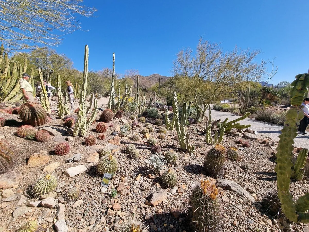 Naší další zastávkou je Arizona-Sonora Desert Museum. Název může být matoucí, ale nejedná se o žádnou budovu. Jde o pořádný kus pouště, který už opravdovou botanickou zahradou je. Ranger, okolo kterého procházíme, nás zve, ať se připojíme k jeho výkladu. Dozvídáme se tedy něco o životě v poušti. Zaujme mě jedna rostlina, které jsem si všiml už na několika předešlých místech. Vypadá jako uschlá a mezi kvetoucími kaktusy a květinami, kterými se zimní poušť jenom hemží, lehce vyčnívá. Ranger vysvětluje, že jde o její přirozený vzhled, kdy tak přečkává období beze srážek. Když zaprší, tak se na nějakou dobu zazelená, ale po většinu roku vypadá jako uschlé křoví.