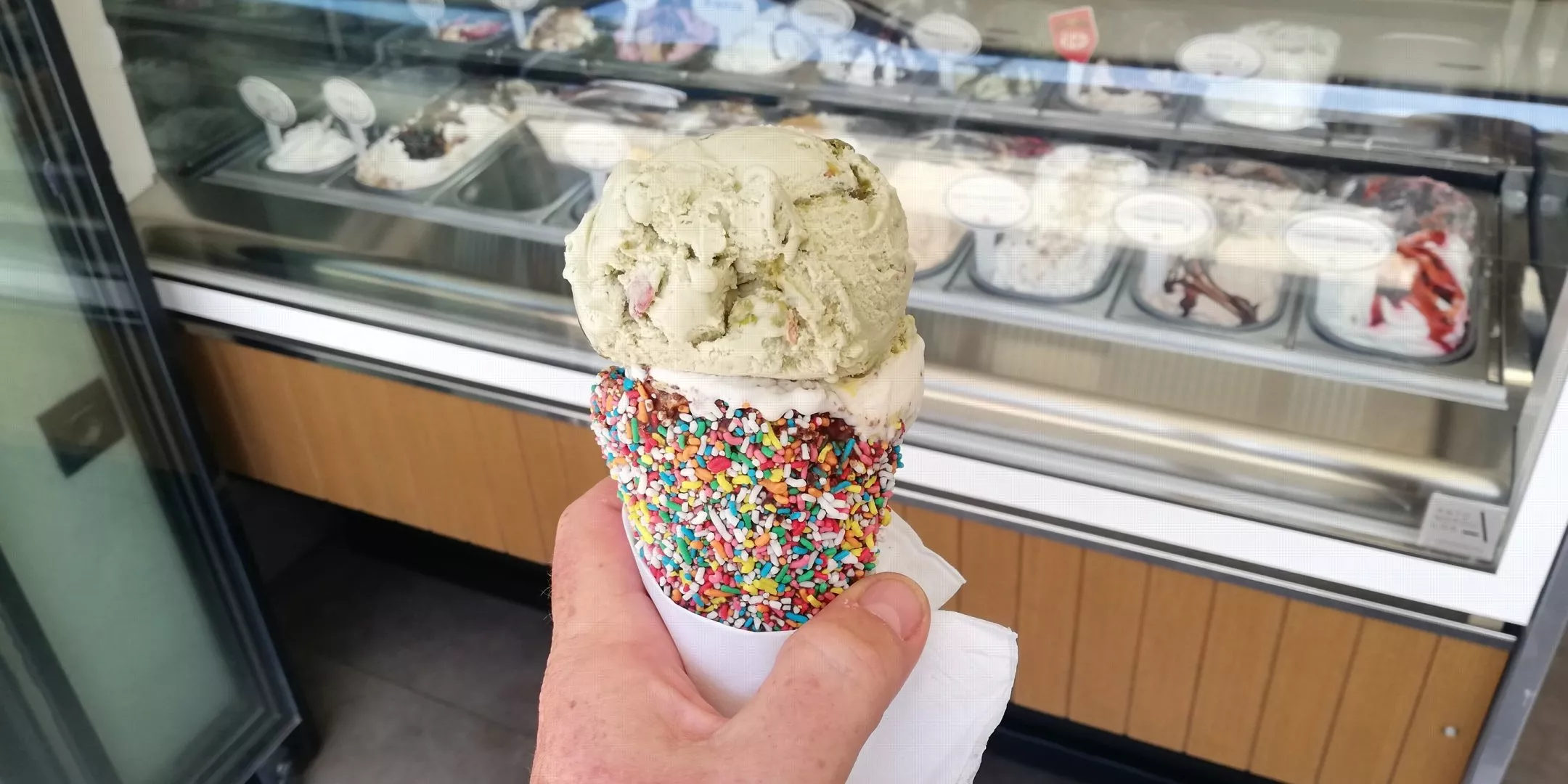Když nám slehne, nasedáme do našeho automobilu s chutí na něco sladkého. Cílem bude některá z našich známých vyhlášených cukráren. Zákuskům a zmrzlině se tady prostě nedá odolat. Nevím, jestli je to dané tím místním slaným vzduchem, nebo spíš šikovností místních cukrářů a výrobců zmrzliny, nebo prostě tím, že tady se na surovinách nešetří! Máslový krém je z másla a smetanová zmrzlina ze smetany. Jak prosté, ale ve finále opojné. Zkrátka a dobře, tohle doporučení vám můžeme dát kdykoliv, na Krétě je to jeden ze zážitků, které si nenechte ujít. Samozřejmě, že chalva, kataifi, loukomi, melomakarona, patří ke stálicím Kréty i Řecka samotného, ale klasické cukrářské výrobky jsou jiná liga. Neochutnat by byl prostě hřích. Stejně nezapomenutelná je již zmiňovaná zmrzlina. Nekonečný výčet druhů a příchutí, kreativní servírování nejen do roztodivných kornoutů, to vše je prostě pastva nejen pro oči, ale hlavně pro jazyk.