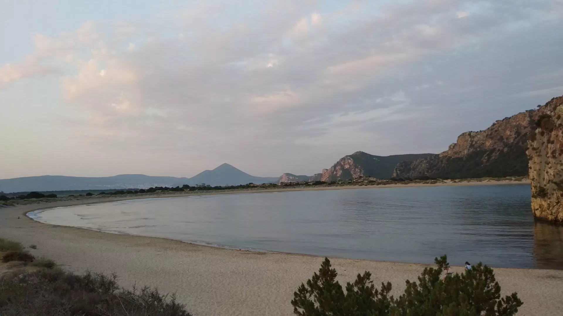 Je středa 5. července něco po 2:30 a my vyrážíme na top pláž, kterou doporučil nejen Fotr na tripu, ale je takřka ve všech brožurách, které jsme v Řecku zahlédli. Jde o pláž Voidokilia, ke které to máme 150 kilometrů a chceme si zde užít východ slunce a klid bez lidí. Kolem půl sedmé ráno jsme u moře první a při snídani se kocháme krásným východem slunce. Nádhernou koupačku prokládá Plevouš i krátkým pěším tripem po okolních skalách za honbou nejkrásnějšího záběru této originální pláže, nad kterou se tyčí pozůstatky hradu Palaiokastro. Přiblížila se desátá hodina, sluníčko začíná topit, a tak se s pláží loučíme a pokračujeme autem dále na jih do městečka Menthoni, kde parkujeme na dohled od pozůstatků pevnosti Methoni.