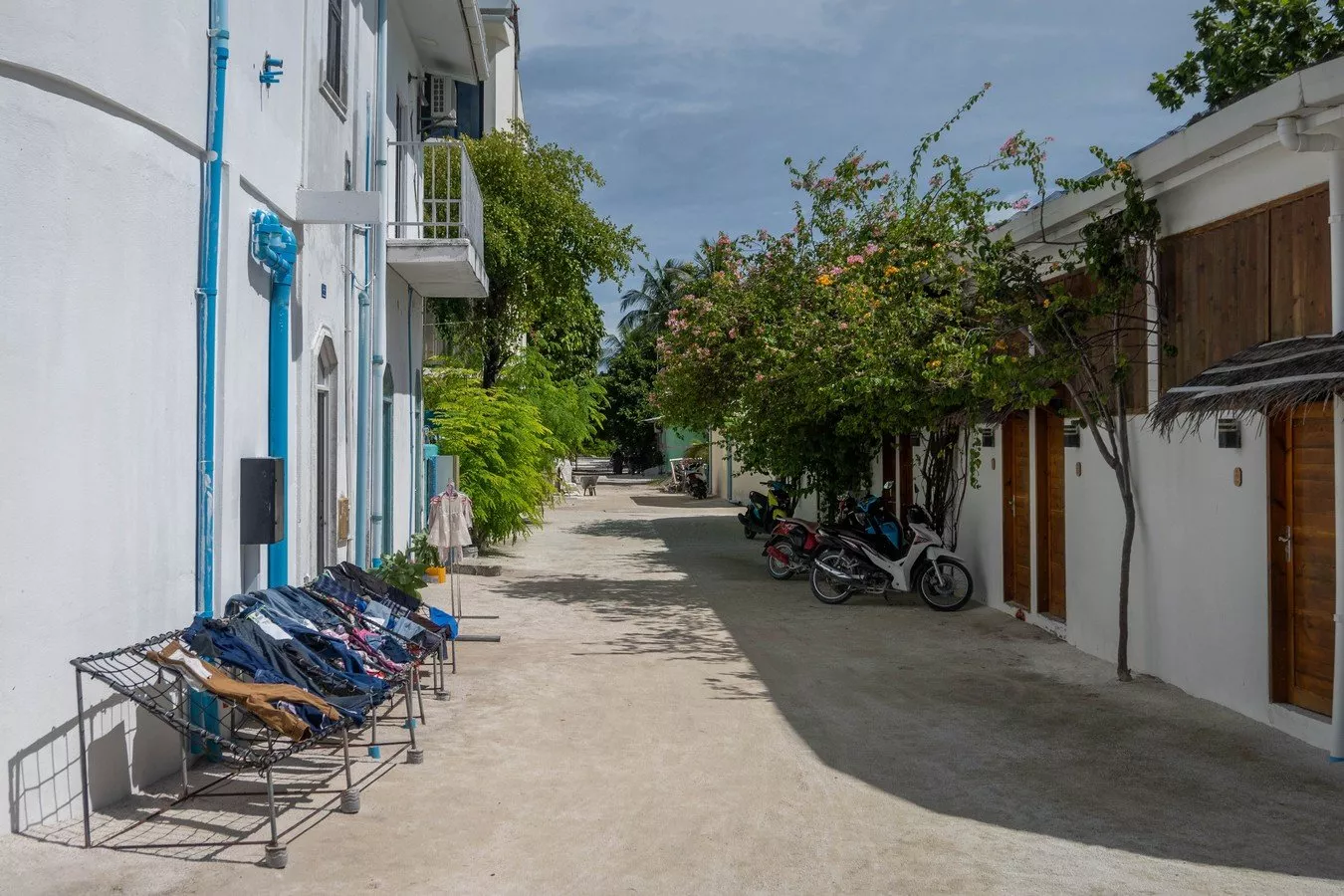Dhiffushi je jako sen, který se stal realitou. Ostrov měří jen asi 1 km na délku a 200 metrů na šířku, což je ideální velikost pro dětské nohy a rodičovský klid. Nejsou tu žádná auta, jen pár elektro skútrů a spousta úsměvů. Místní děti si hrají na písčitých cestách, slepice pobíhají mezi keři a kokosové palmy se líně klátí ve větru.