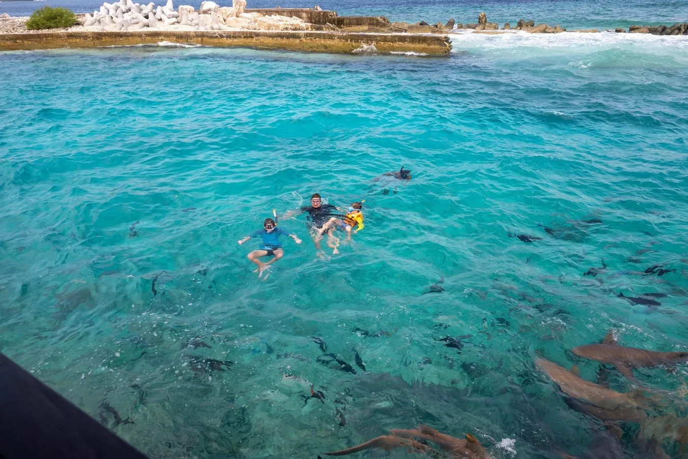 Jedna strana ostrova nabízí veřejnou pláž pro místní i turisty v plavkách, druhá, označená jako „bikini beach“, je určená vysloveně pro cizince. Bílý písek, tyrkysová voda a rybičky, které vám plavou kolem nohou jako ve filmu „Hledá se Nemo“. Šnorchlováním tu naše děti trávily hodiny denně a stále se nemohly nabažit. Sem tam zde zahlédnete i malé žraločky útesové či trnuchy, ale bát se jich nemusíte. Stačí je jen vysloveně nerušit.