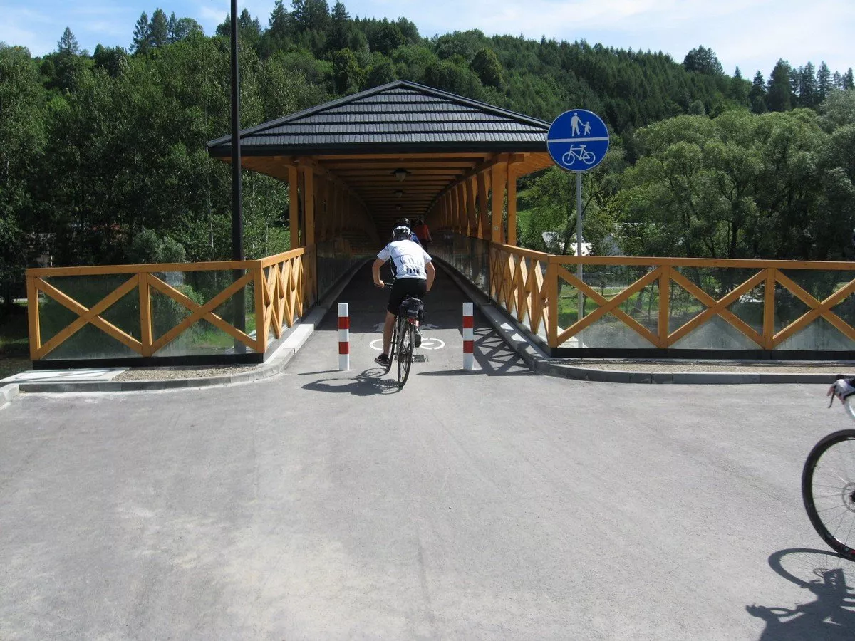 Už ve Szczawnici jsme zaznamenali poměrně hustý provoz na cyklostezkách, který gradoval až do Červeného Kláštera. Szczawnica nás přivítala krásným novým cyklomostem, pak jsme krátkou prohlídku Szczawnice završili návratem k Dunajci a místnímu přístavu pro vodáky. Zde jsme se už opět napojili na cyklostezku kopírující Dunajec.