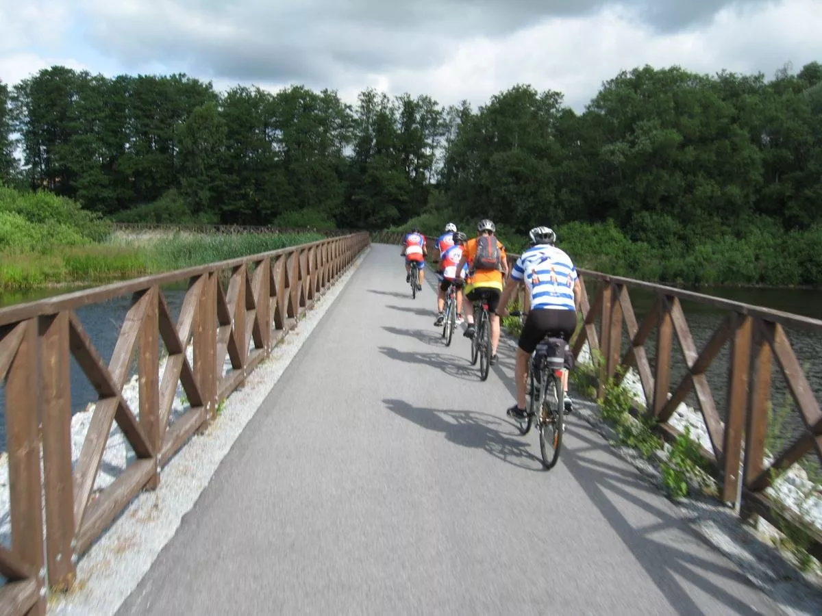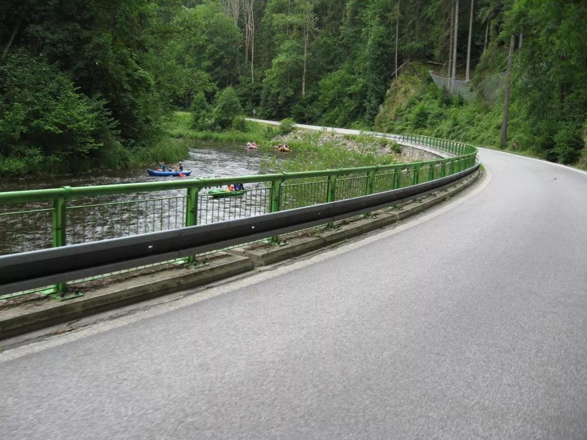 Od hraničního kamene jsme zahájili cykloetapu směrem Německo. Po pár metrech nás přivítala hraniční obec Haidmühle. Hned za obcí začalo stoupání po hlavní silnici, ze které jsme následně zahnuli doleva a prakticky v nulovém provozu jsme 11 kilometrů stoupali až na vrchol Dreisessel (Třístoličník, 1302 m n. m.). Těsně pod vrcholem se nachází také horská chata Berggasthof, kde se dá občerstvit. Na horskou chatu se lze dostat i autem, 700 m pod vrcholem je parkoviště, ze kterého je už finále třeba vyšlapat po úzké asfaltce pěšky. My jsme si cestu zpět na kole z Haidmühle na Lipno zpestřili jízdou hustými šumavskými lesy, kde jsme si udělali pauzu poblíž Stožce. Tam jsme obdivovali Schwarzenberský kanál. Toto důmyslné technické dílo sloužilo k dopravě vytěženého dřeva splavováním. Následně nás čekal už jen dlouhý sjezd do Nové Pece a přesun jižní stranou Lipna až k přívozu, kterým jsme se dostali do Dolní Vltavice.