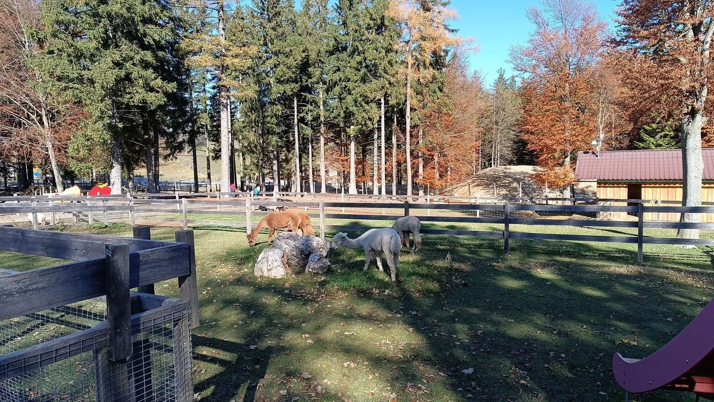 U hotelu si užíváme výhledů ze skály Kleine Kanzel, kde poprvé vidíme druhou stranu parku Hohe Wand, než jakou jsme doposud viděli. Dále jdeme půl kilometru po silnici až k mini zvířecí zoo, kde využíváme zakoupené vstupenky na vyhlídku Skywalk a jdeme omrknout, co že to tu chovají. Mimo prasat, koz, lam a drůbeže na druhé straně za silnicí, kam se dostáváme tunelem, jsou také mufloni a přímo u silnice nad parkovištěm je dančí obora. V celém lesním oploceném areálu je řada dětských atrakcí, kde si děti užijí zábavy a rodiče budou mít čas si v klidu posedět na lavičkách.