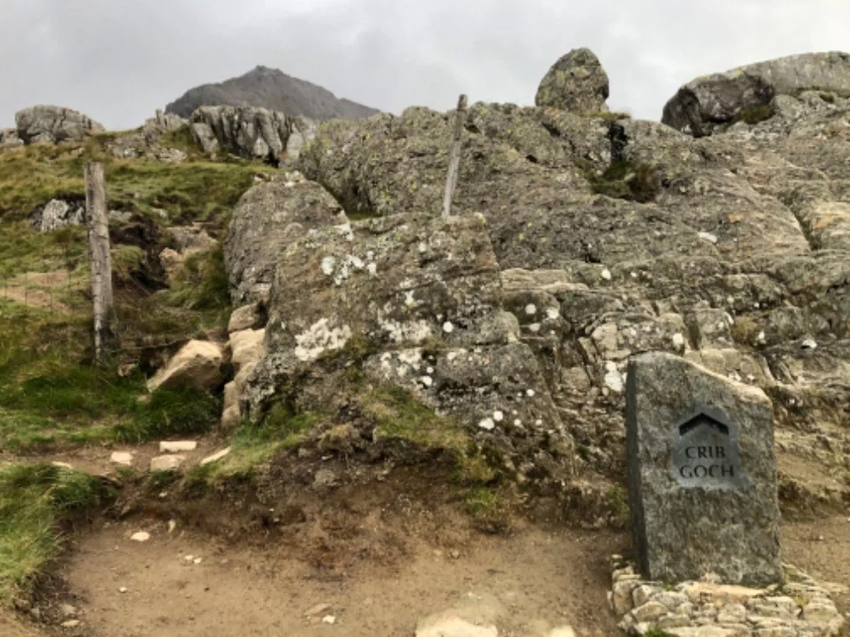 Když vylezu na první vyšší místo kopce, začne být o něco chladněji a já si obleču bundu. Dále už vidím kámen značící výstup přímo na Crib Goch a mě zaplavuje euforie. Přelézám jeden z plotů, které tu kvůli kozám stojí; pro pěší tu přes ně vedou žebříčky. Mezi několika zvědavými kozami procházím po cestičce až do bodu, kde cesta mizí a já vidím jen velký černý mrak a prudký déšť ženoucí se přímo na mě. Sílící vítr jen umocňuje moje nepříjemné pocity.