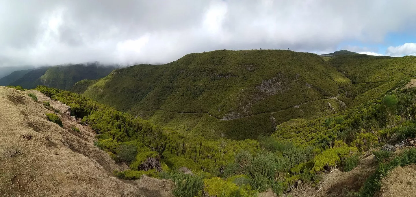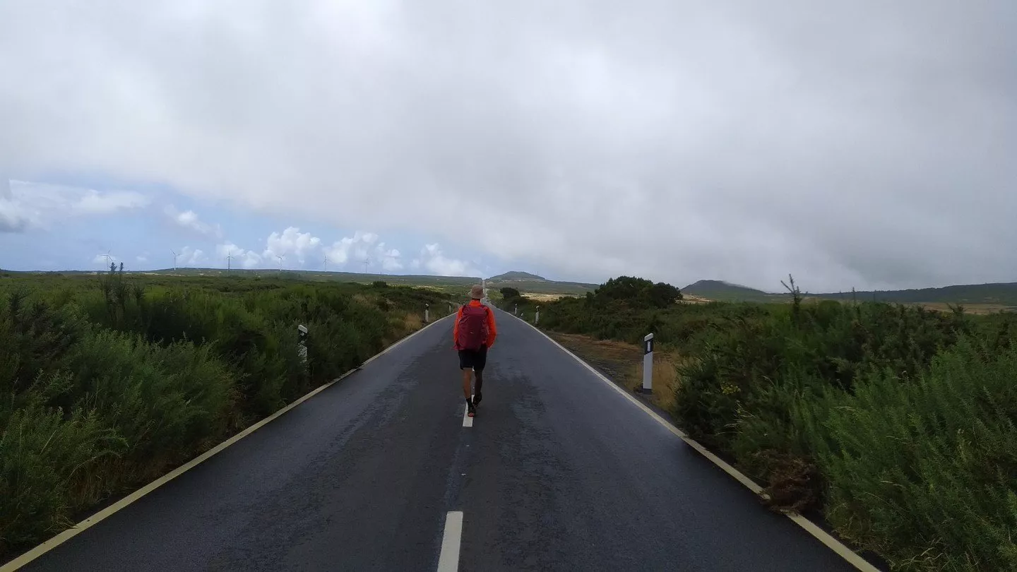 Plevouš začíná opět vadnout. Přicházíme na širší šotolinovou cestu, která je však zarostlá keři s ostružiním, a tak si místy připadáme, jako bychom se probíjeli do království vzbudit spící princeznu. Cesta se láme na hřebeni (1550 m n. m.) pod vrcholem Ruivo do Paul (1639 m n. m.). Začíná opět pršet a my scházíme k hlavní silnici, která v nás evokuje přirovnání k Route 66.