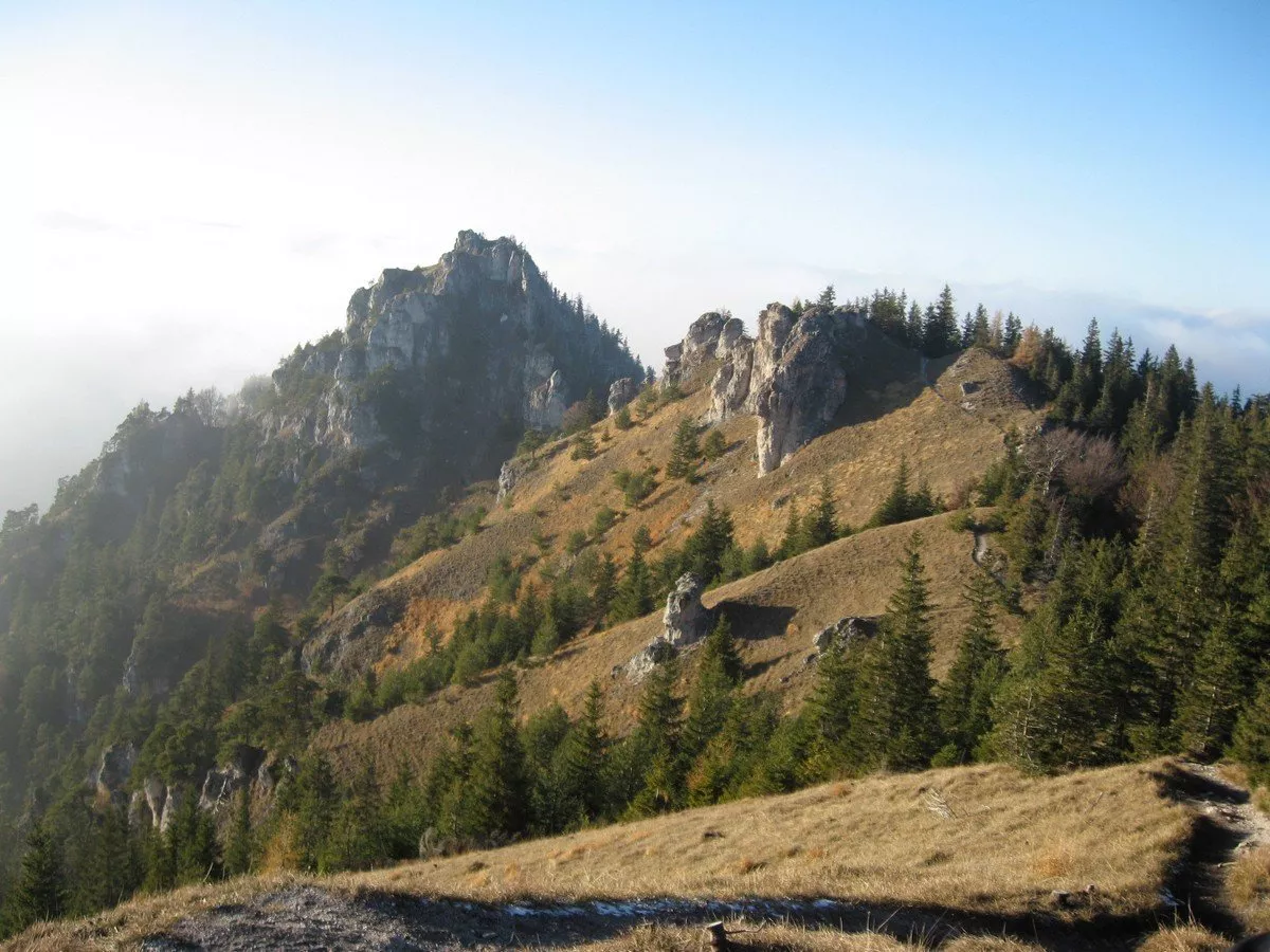 Dále pokračujeme po hřebeni přes Bágľov kopec po zeleném značení až na Zadní Ostrou, odkud jsou při přetrvávajícím slunečném počasí nádherné výhledy. Odtud je to po žluté značce už jen kousek na Sedlo Ostrej (1200 m n. m.), ti zdatnější pokračují až na vrchol Ostrá (1263 m n. m.) za pomoci řetězů ve skalním útesu, výstup trvá přibližně 10 minut. Před výstupem doporučuji nechat batoh na těch pár minut v Sedle Ostrej a šplhat na vrchol „na lehko“.