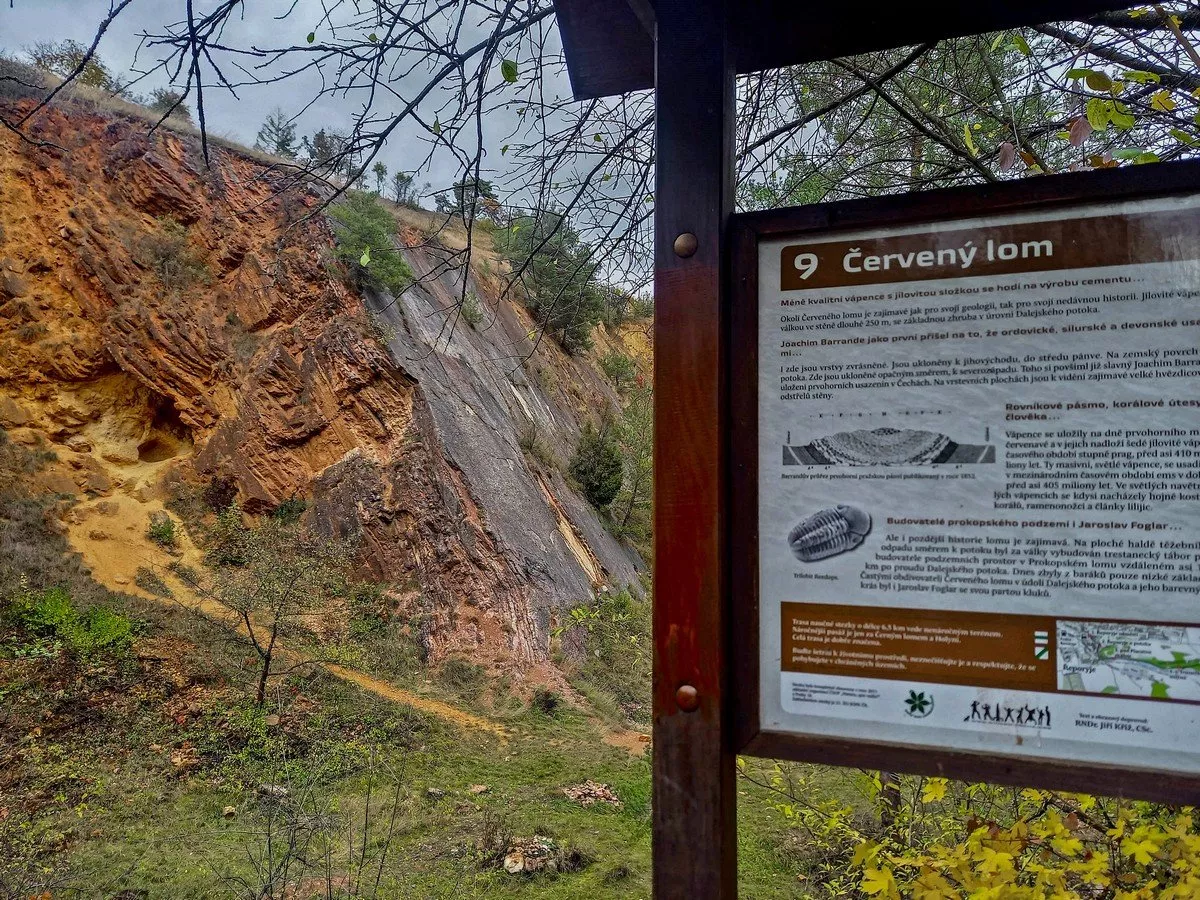 Praha – Holyně! Vystupovat! Kdo si chce o trochu zkrátit cestu nebo toho prostě tolik neujde, může z vlaku vystoupit už v Holyni. I tak toho uvidí hodně. Začátek trasy se můžete klidně brodit Dalejským potokem, pro děti příjemné dobrodružství. Každopádně před sebou máte jednu z nejhezčích etap tohoto výletu - kolem Červeného lomu. A už jste na dně pravěkého moře, ani nevíte jak.