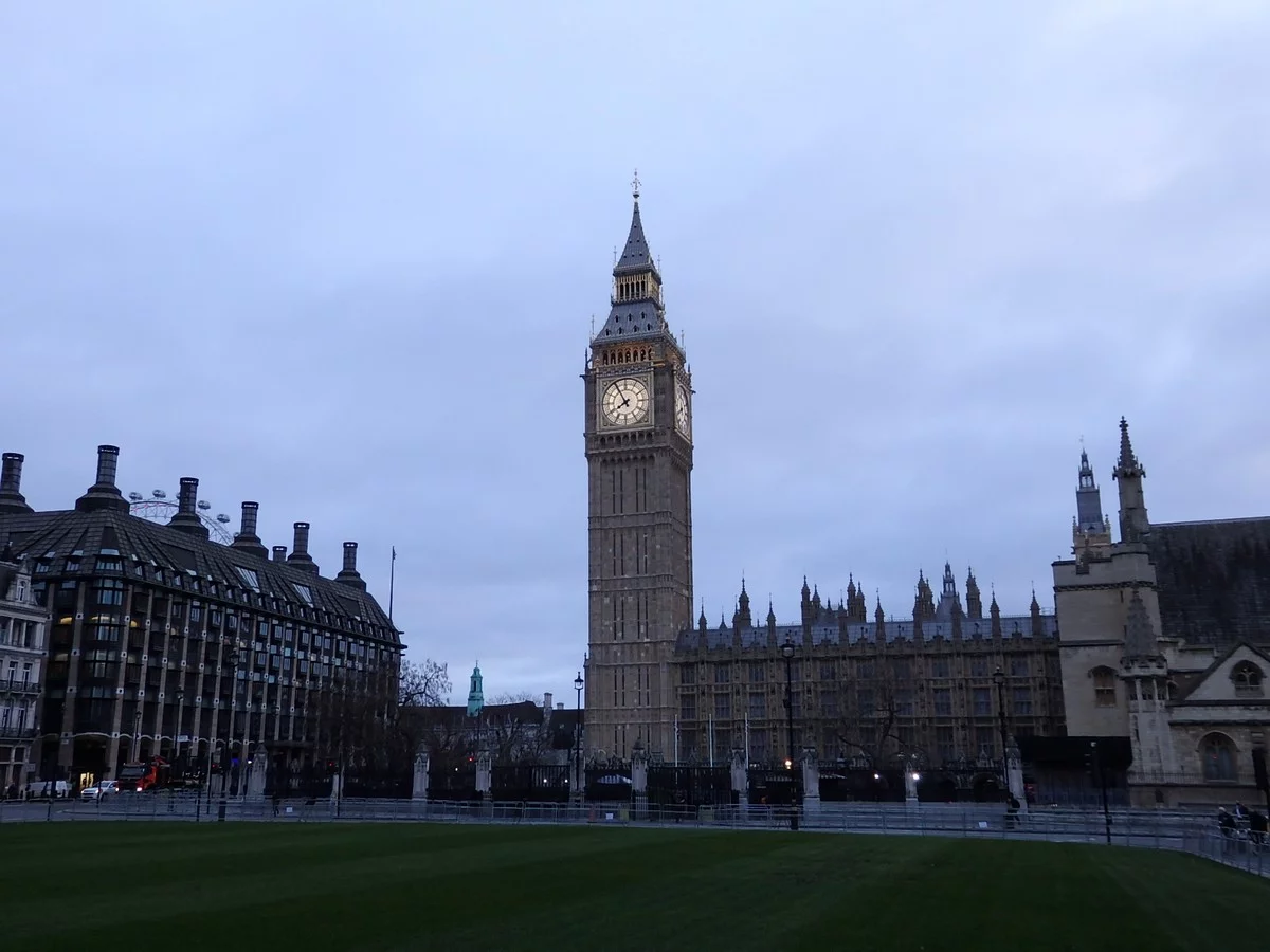 Jedna fotka a pokračujeme směrem k Westminsterskému paláci, stáčíme ještě vpravo a jdeme krátce po ulici Victoria, kde nás zaujala historická budova vedle Westminsterského kostela. Vracíme se k paláci a míjíme Big Ben, který právě ohlašuje osmou hodinu ranní. Na Westminsterském mostě nás předjíždí patrové autobusy „double-decker“ a vlevo vidíme obrovské London Eye, které se tyčí na břehu Temže.