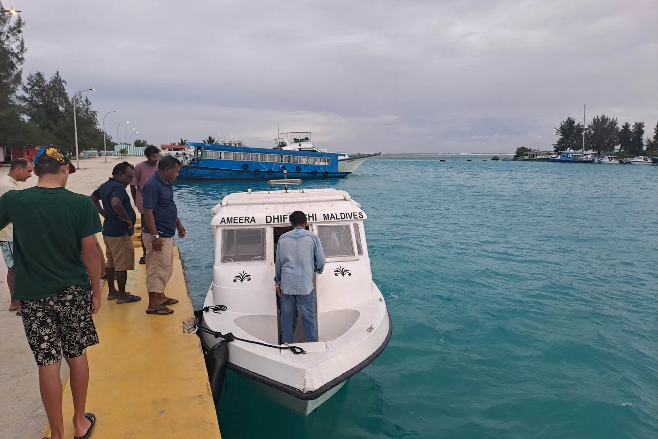 Ostrov není velký a všichni se tu znají a tak přesvědčil známého, aby nás i přes rozbouřenou hladinu přepravil na Thulusdhoo. Chlápek zhodnotil velikost vln a řekl, že pro jeho loďku tohle problém nebude a vyrazili jsme jen asi s hodinovým zpožděním. Loď se houpala na vlnách, slaná voda šplíchala přes boky a mořský vítr nám cuchal vlasy. Děti se střídavě smály a držely pevně lavice, jako by jely na horské dráze. Cena této plavby však byla vyšší než u veřejného trajektu. Oproti asi 4 dolarům za osobu na trajektu jsme za pronájem celé lodi zaplatili 80 amerických dolarů v hotovosti.