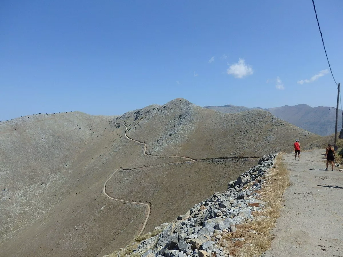 První část silničky se klikatí mezi pastvinami, kde se pasou kozy, následuje skládka komunálního odpadu, což nás upřímně poněkud zneklidnilo, jestli jedeme správně! Jiná možnost tu však není, mapa přeci nelže. Objedeme skládku, za ní v údolí spousta igelitových pytlíků namotaných do keřů a jiných odpadků, které vítr z hromady rozfoukal do okolí. Kulisa nic moc, ale silnice se začíná prudce zvedat, automatická převodovka řadí za jedna a auto se škrábe dále k vrcholu.