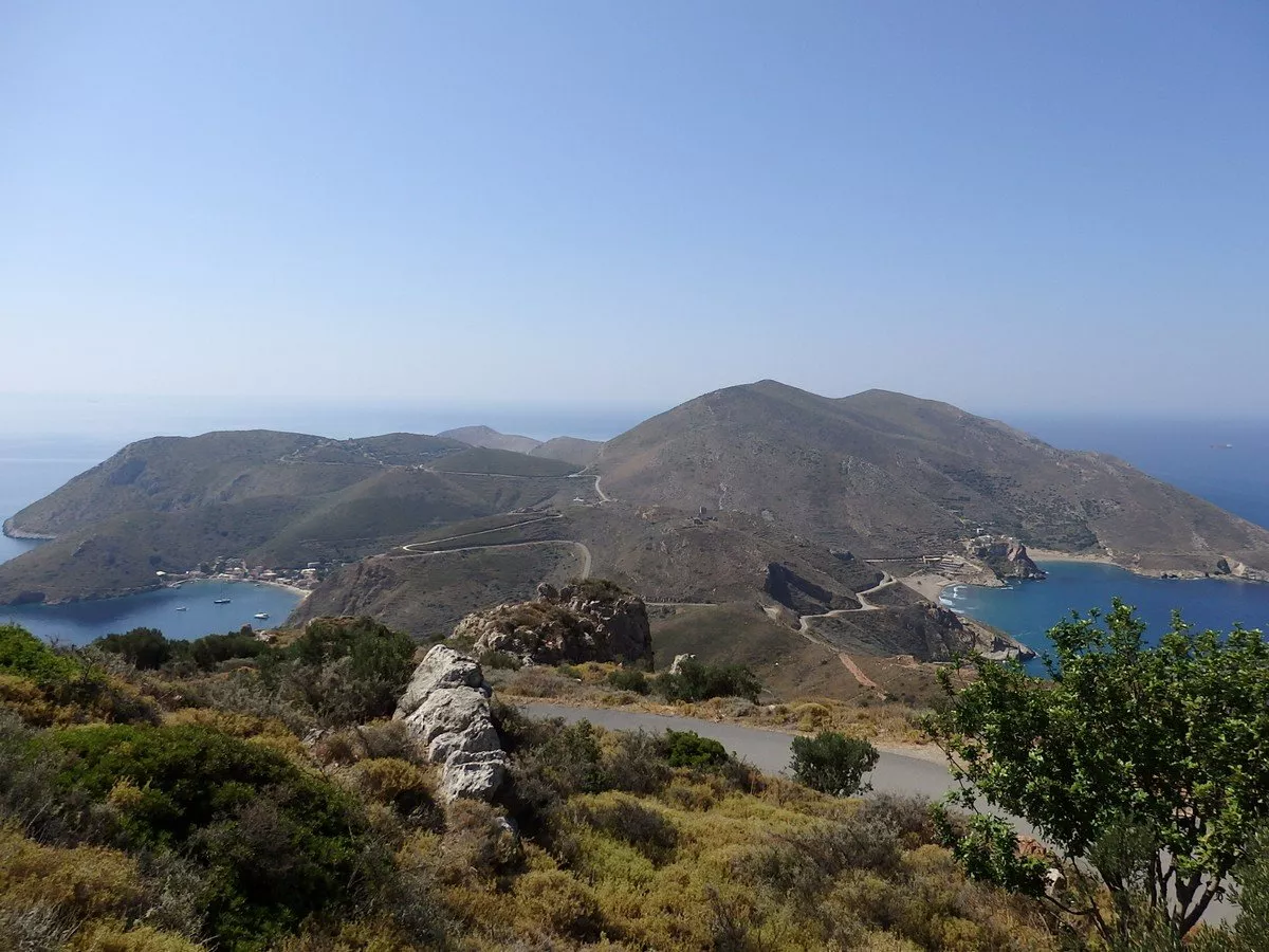 Krátce před 16:15 scházíme z vrcholu a opatrně se dáváme na cestu směrem dolů. Vzhledem k tomu, že motor na brždění nestačí, musí často přijít na řadu i brzdy, které chladíme občasným zastavením. Po chvilce míjíme skládku, stádo koz a jsme zpět na hlavní silnici, která se dále klikatí a klesá až k našemu kempu. Den opět zakončujeme v moři, bazénu, večerním hraním kostek a posilujícím spánkem, protože řecké dobrodružství další den pokračuje.