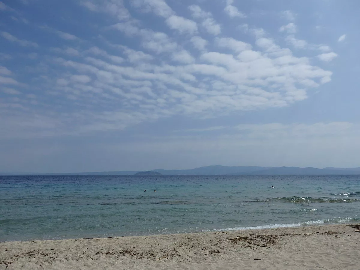 V úterý 18. července si užíváme dopoledne u bazénu a po obědě vyrážíme na krátký průzkum střední části „dlaně“ Chalkidiki. Jak je u nás zvykem, při každém výletu hledáme i místo, kde by se šlo slušně vykoupat a pokud možno bez lidí. Tentokrát máme štěstí - za Stavrosem a 5 kilometrů před městečkem Olympiada kousek od silnice, kde nebyl ani problém zaparkovat auto nacházíme pěknou a zastrčenou pláž. Jsme zde úplně sami a tak to máme rádi. Užíváme si klid, moře a sluníčka.