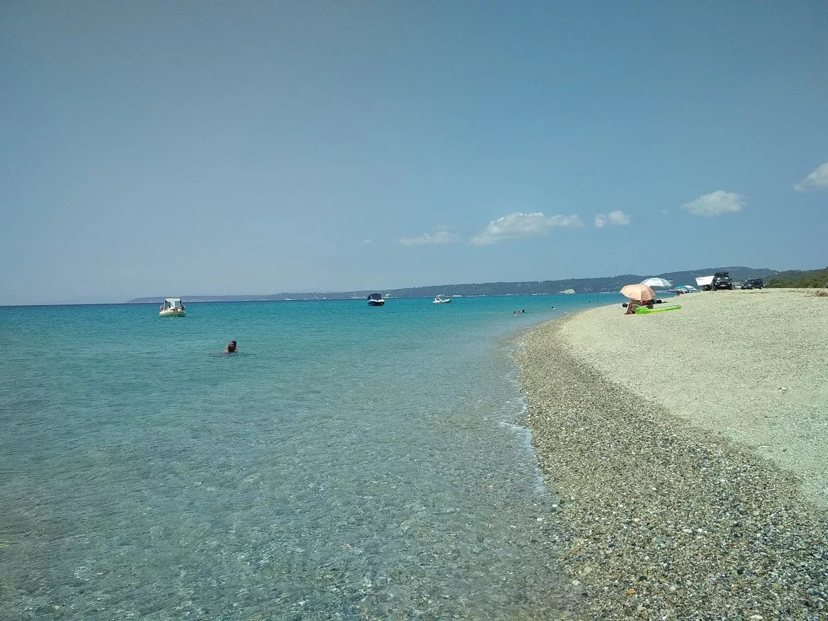I když máme naplánovaný celodenní výlet, na naše poměry vstáváme celkem pozdě a z apartmánu odjíždíme až v 7:30. Prvním cílem je oblast, kde nás zaujalo jezero Glarokavos s marinou propojené s mořem. Usuzujeme, že marina vznikla prokopáním a propojení s mořem je tedy umělé, ale i tak je to pěkné místo vhodné ke koupání. Pláž je písečná, moře krásně čisté a za bonus považujeme možnost autem dojet až na hranu moře.