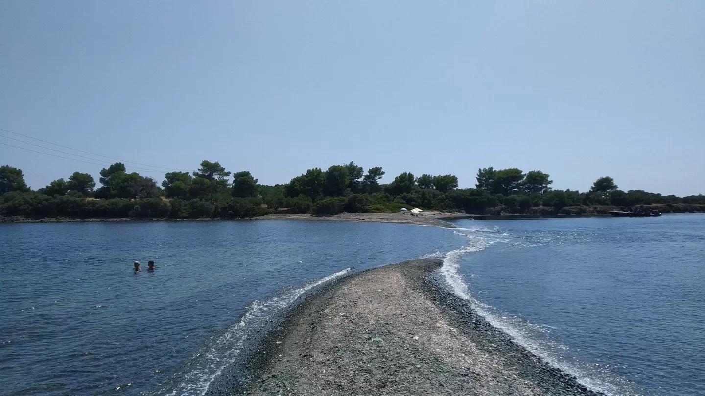 Před polednem se balíme a vyrážíme na další zajímavou pláž. Cestou krátká zastávka v zátoce s překrásně zbarvenou vodou a luxusním komplexem Ammoa Luxury Hotel & Spa Resort a především opět na vynikající oběd, tentokrát ve městečku Neos Marmaras. Po výborném obědě pokračujeme ještě kousek k pláži Diaporti, ke které vede částečně šotolinová cesta, která pro nás končí cedulí se zákazem vjezdu. Dále z kopce po soukromé cestě již musíme pěšky, ale odměnou nám je opět moře bez lidí. Nejde až tak přímo o pláž, ale spíše takový oblázkový pás, který spojuje pevninu s ostrůvkem Spalathronisia, který se v ostrov mění dle přílivu a odlivu, kdy dochází k zaplavení přechodového pásu. Ve 14:30 je část spojnice s ostrovem zaplavená, a tak se přelívá moře z jedné strany na druhou a je zde znát, která strana je více prohřátá. Po hodince rochnění se vracíme k autu a vyrážíme zpět na apartmán. Večer se jdeme projít po Peraia a stíháme pěkný západ slunce za pevninské hory.