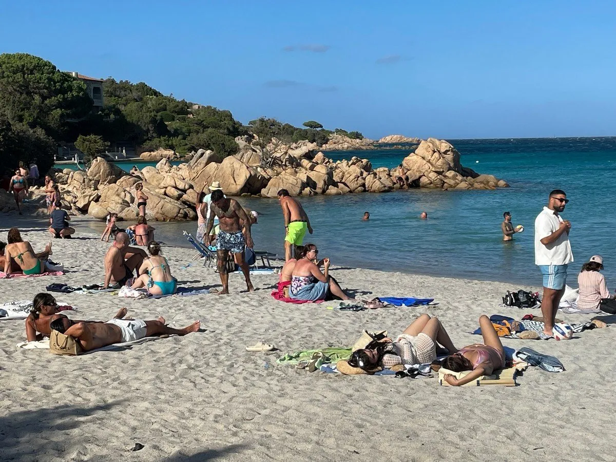 Když přijíždíme k parkovišti u pláže Spiaggia di Capriccioli est, je plné. Za parkovné se na první pohled nic nevybírá, ale kluci sedící u pomyslné brány pouští vždy dovnitř auto jen, když jedno auto vyjede ven z parkoviště. Máme před sebou tři auta. Netrpělivě kleji a v duchu otáčím, ale má druhá polovička je klidná a podporuje mě v trpělivosti. Nakonec se po deseti minutách dostáváme dovnitř a druhá polovička je tak klidná, že při mém dotazu na nějakou platbu parkovného dodá „zaplatíme při odjezdu“. Rozpuštěný bez zdravého rozumu to přecházím a mířím spolu s ostatními k moři.