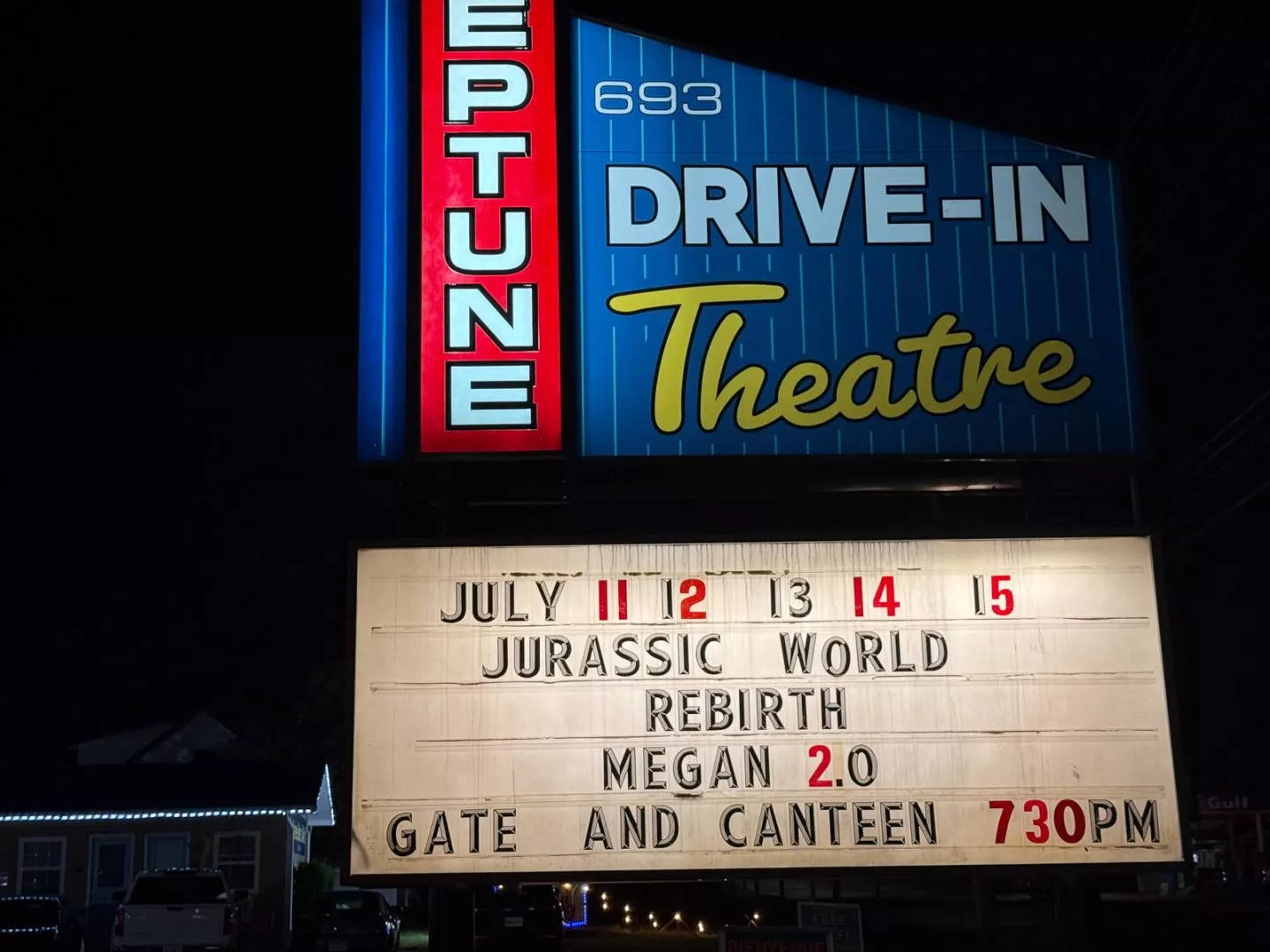 Neptune Drive-In v Shediacu promítá už od roku 1960. Otevírají každé léto zhruba od června do září, hrají čtyři dny v týdnu a program se mění každý víkend.