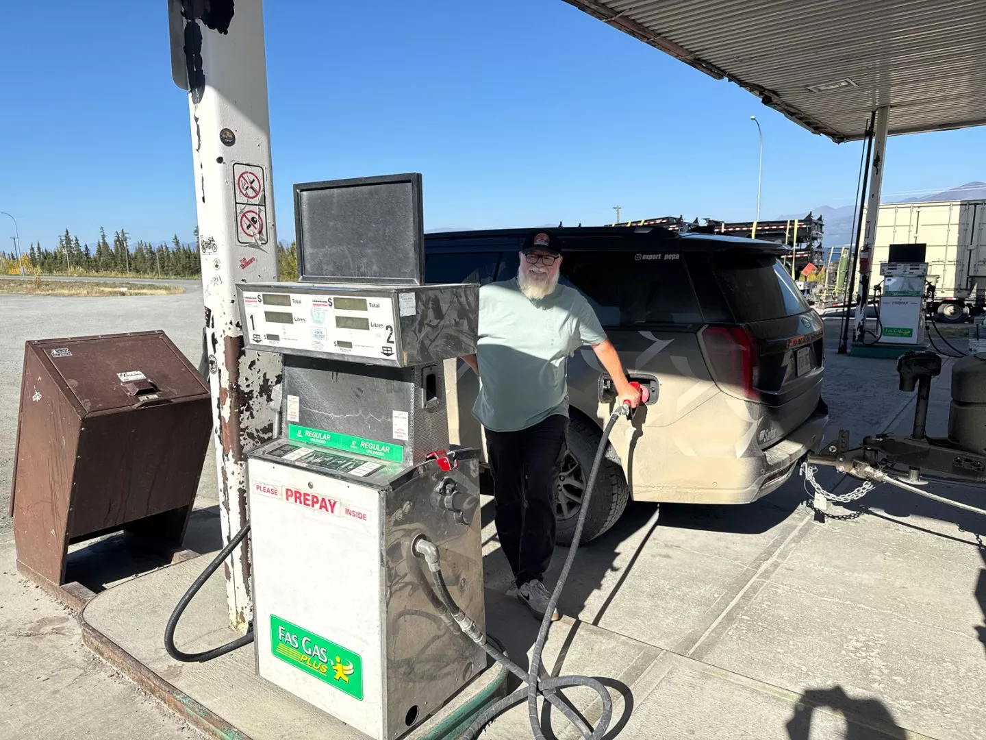 Jeli jsme Fordem Expedition, takže spotřeba byla taková, že každá zastávka měla svou váhu. Navíc třetinu cesty jsme táhli přívěs, což z našeho auta dělalo ještě většího žrouta. Zatímco doma je pumpa jen rychlá zastávka na cestě, v Kanadě se nám benzinky staly výletními destinacemi.