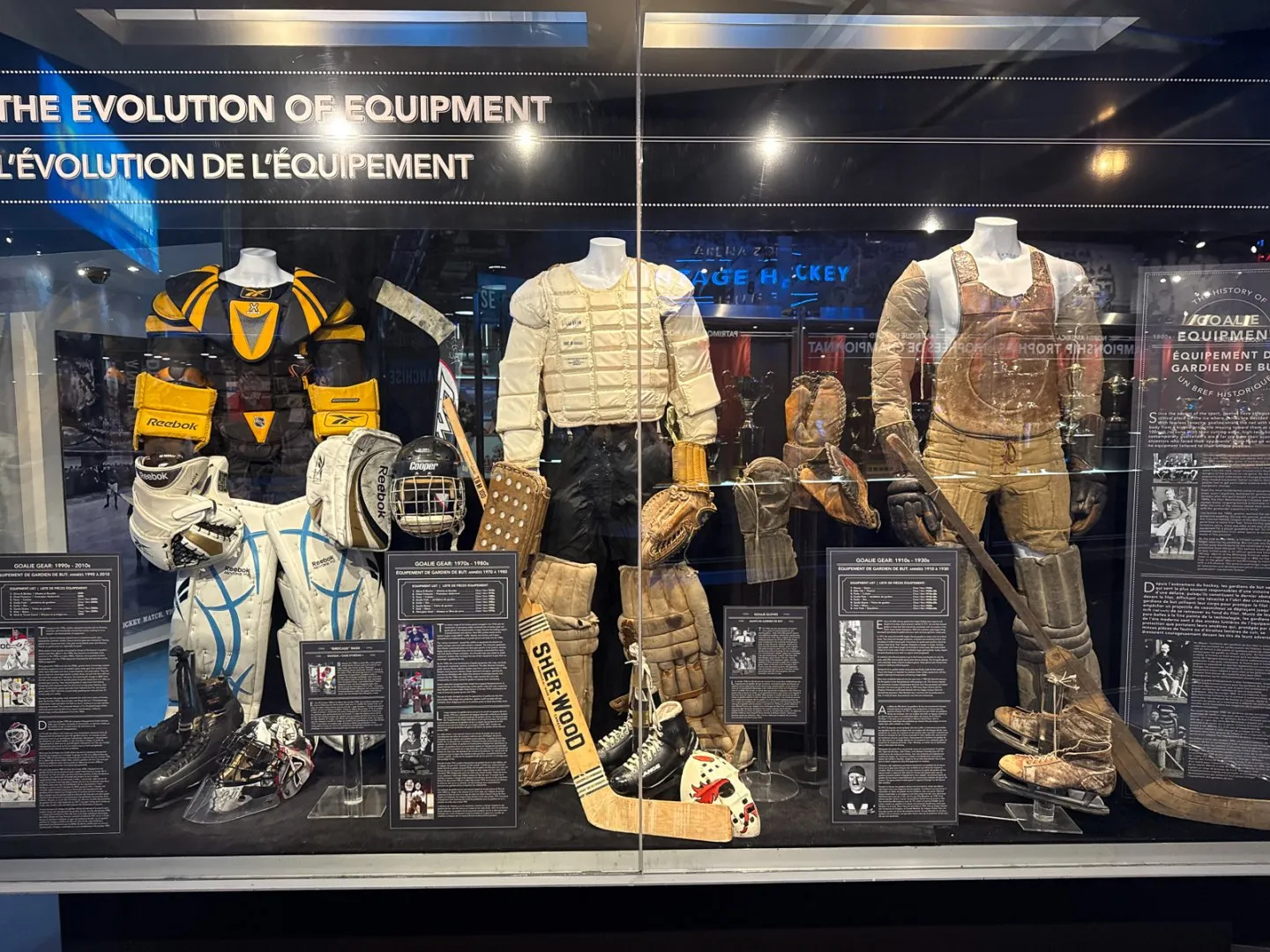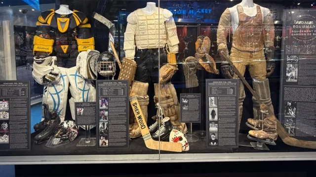Hned po vstupu je jasné, že tohle není výstava „kouknu a jdu“. Chronologická cesta hokejem vás provede od úplných začátků, dřevěné hole, těžké puky, žádné helmy, až po moderní NHL.
