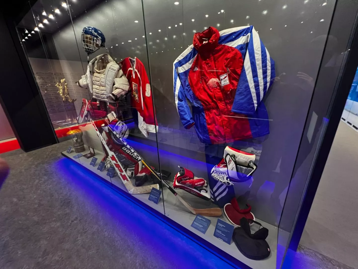 Těsně před startem českého mistrovství světa v ledním hokeji byla po přibližně roční pauze znovu otevřena Síň slávy českého hokeje. Ta původní byla umístěna kousek vedle O2 areny a nabízela velké množství hokejových artefaktů i dalších atrakcí včetně možnosti vyzkoušet některé hokejové disciplíny nebo si zahrát na Roberta Zárubu a otestovat, jaké je komentování hokejových zápasů. Jenže podle vedení Českého svazu ledního hokeje byl provoz příliš nákladný a tento projekt byl výrazně ztrátový. Loni byl proto za trochu rozpačitých okolností ukončen a nastalo hledání nové podoby „svatostánku českého ledního hokeje“, která měla být mnohem méně nákladná. A výsledek přesně tomuto záměru odpovídá.
