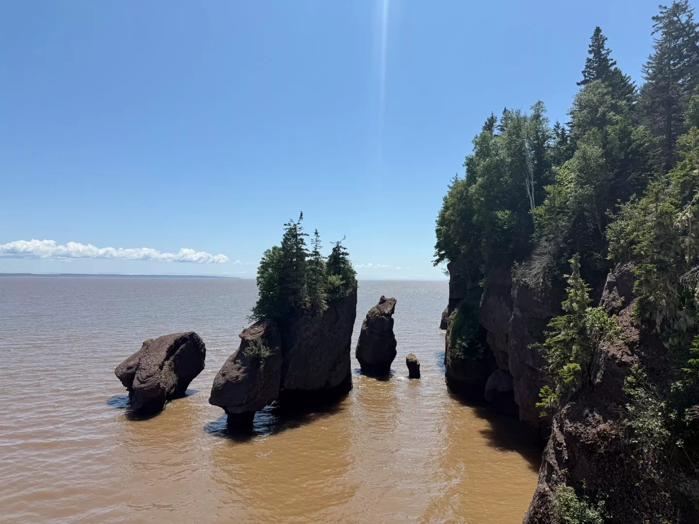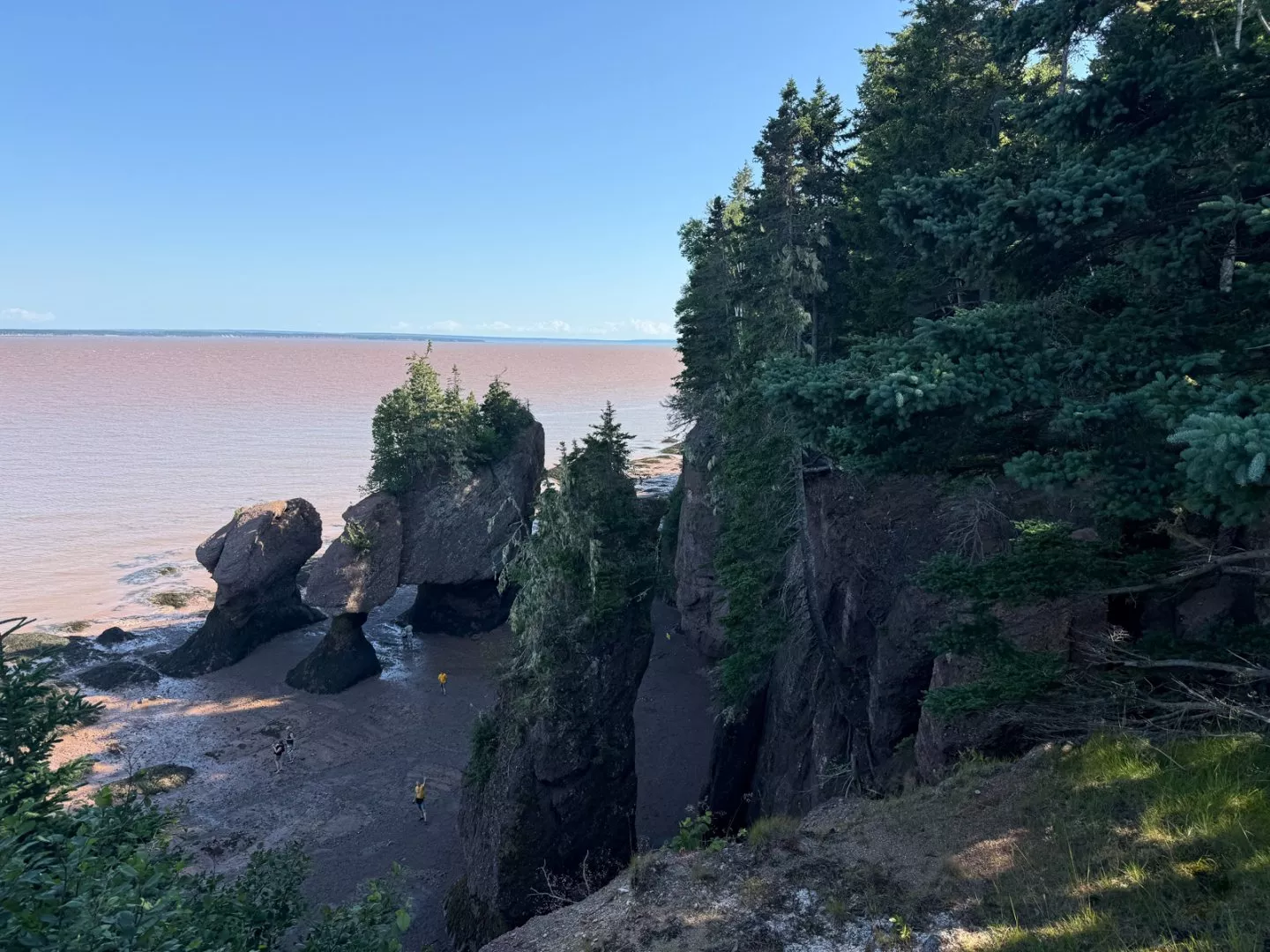 Hopewell Rocks leží na břehu Bay of Fundy, která je známá tím, že má nejvyšší příliv na světě. Rozdíl hladiny mezi přílivem a odlivem může být až 16 metrů, což je fakt znát.