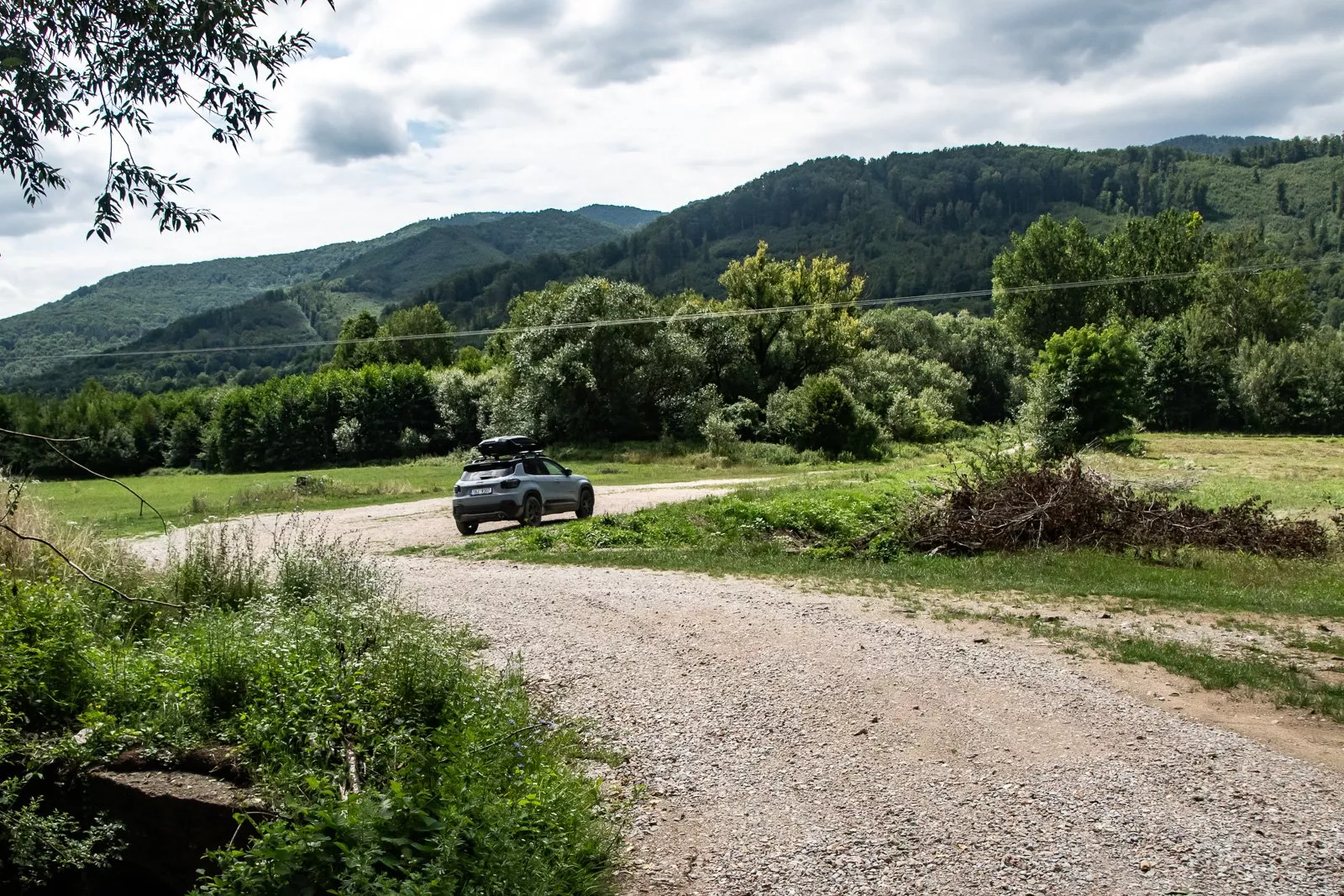 Na tenhle trip jsme se vypravili malinkatým Jeepem Avenger, který ale byl překvapivě šikovný. Měl totiž podvozek zvednutý na 210 mm, pohon všech kol řešený druhým elektromotorem vzadu, hybridní pohon vykazoval nízkou spotřebu (na celé cestě 7 l/100 km) a to znamenalo zajímavý dojezd. Fakt, že kočár zabral v podstatě celý zavazadelník, vyřešil střešní box od Thule. Navíc auto dorazilo v pěkné „objevitelské“ edici North Face, která vznikla spojením Jeepu s tohle známou společností. Auto dostalo stylové polepy a hlavně pěkná sedadla čalouněná takovým omyvatelným materiálem připomínajícím bundy. A to se v kontextu častých výletů do lesů dost hodilo. Veškeré technické informace o Avengeru 4xe najdete v katalogu našich kolegů z Autosalonu.