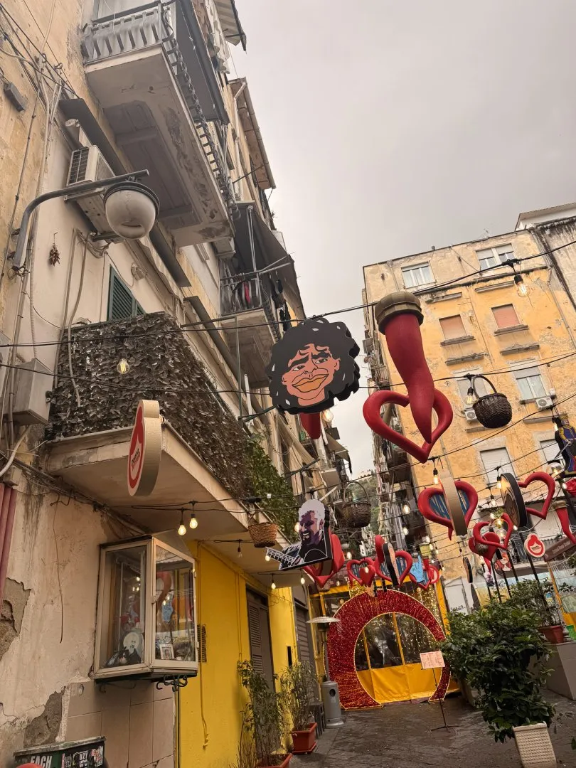 Quartieri Spagnoli ukazují Neapol v její nejsyrovější podobě. Úzké ulice, prádlo natažené mezi domy, skútry opřené o zdi, malé obchody a běžný každodenní život vytvářejí atmosféru, která není uhlazená, ale je naprosto opravdová. - Proč je v Neapoli všude Maradona?