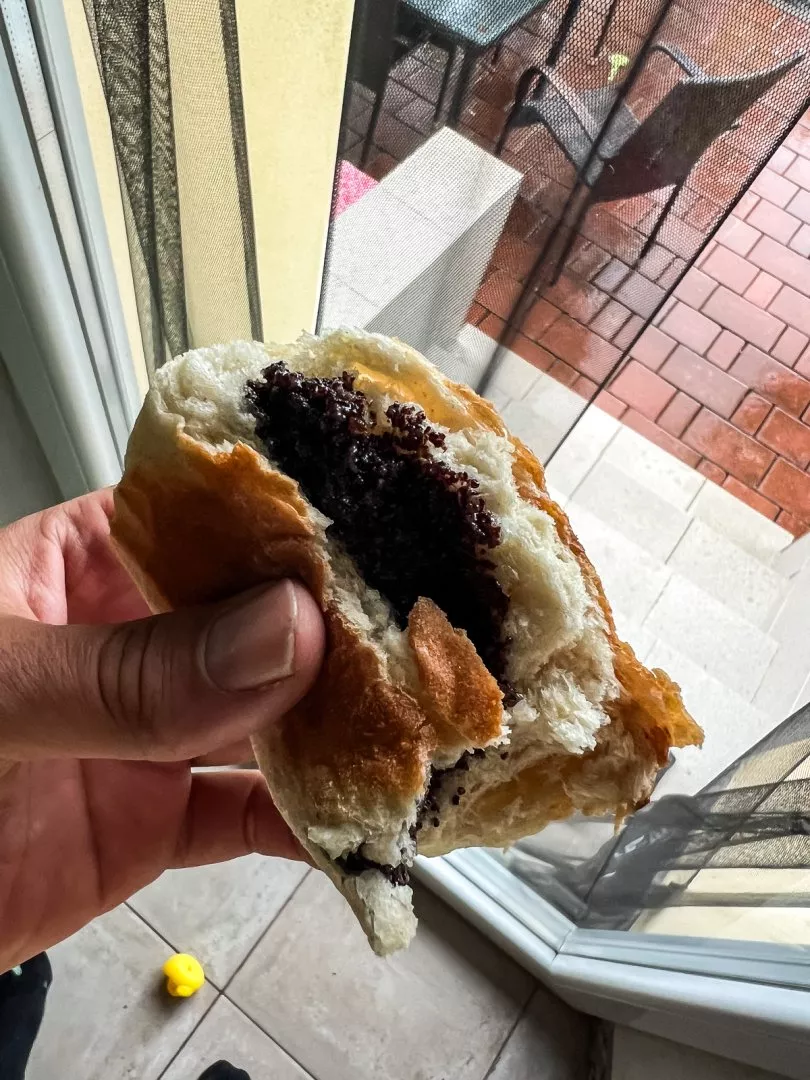 Po prohlídce hradu jsme chtěli ještě ochutnat buchty z místní pekárny, jenže ty jsou tak vyhlášené, že odpoledne už bývají vyprodané. Ale později během pobytu jsme dorazili dříve a buchty si koupili. Mají různé příchutě, buchty to jsou dost velké a jedna stojí jen dvě eura (u nás by byly v turistických destinacích spíš za stovku, minimálně). Za nás jednoznačně nejlepší příchuť je maková. S náplní se fakt nešetří.