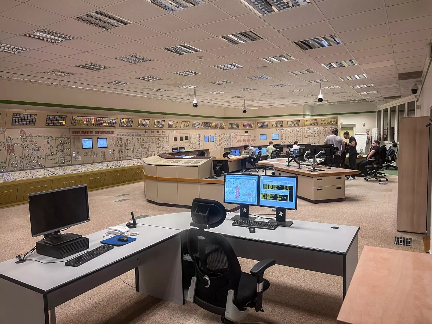 Svůj velín má každý temelínský blok, který se skládá z reaktorovny a strojovny obsahující turbínu. V Temelíně jsou tedy tyto velíny dva. V rámci exkurze se do těch opravdických návštěvníci nepodívají, ale smutnit nemusíte. Tahle zkušební místnost je dokonalá kopie, aby vše bylo co nejreálnější. Kromě obrazovek, světýlek, diod a informačních panelů jsou zde dokonce stejné i židle nebo koberec. Navíc je jen pár detailů a návštěvní místnost, ze které zvědavci sledují, co lidé uvnitř dělají.
