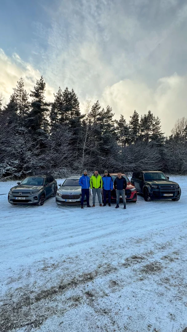 - Z Prahy na Slovensko vyrazila tři auta, čtvrtý bača se připojil s Defenderem až na místě.