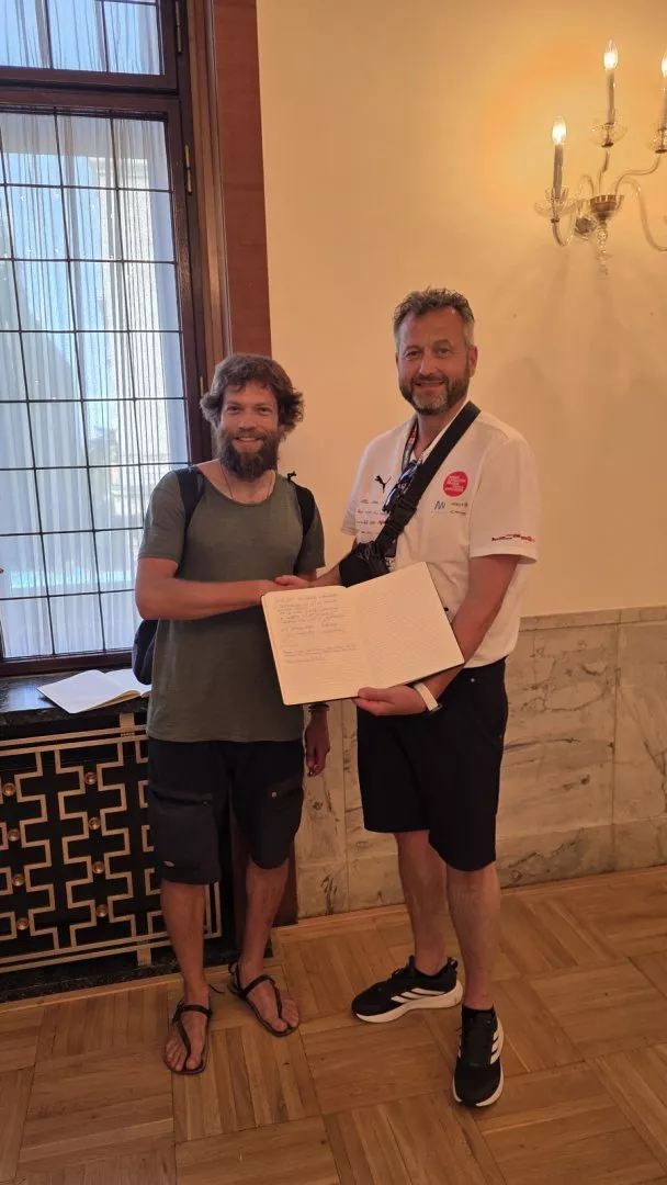 Úplnou náhodou se ve stejný čas přišel na velvyslanectví podívat Janko Houtek z kanálu Honzikovic cesta, který ze Žďáru nad Sázavou jede do Ázerbájdžánu na jízdním kole. Plní si tím svoje sny. Stejně jako my při cestě do Japonska.