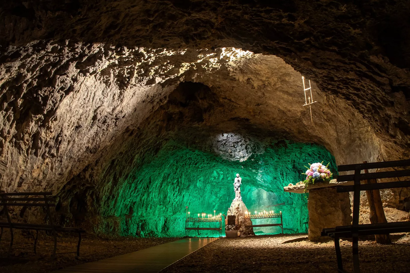 Po vstupu do areálu se asi po pěti minutách chůze dostanete k první jeskyni, která sloužila, a stále ještě slouží, jako kaple. Je to docela velká jeskyně a na jejím konci najdete nasvícený oltář, což dává místu speciální atmosféru. Můžete si tu zapálit svíčku. Jsou zde k dispozici za symbolický poplatek několika málo eur, které hodíte do kasičky. Tak si nezapomeňte drobné. Vstup se dá samozřejmě platit kartou.