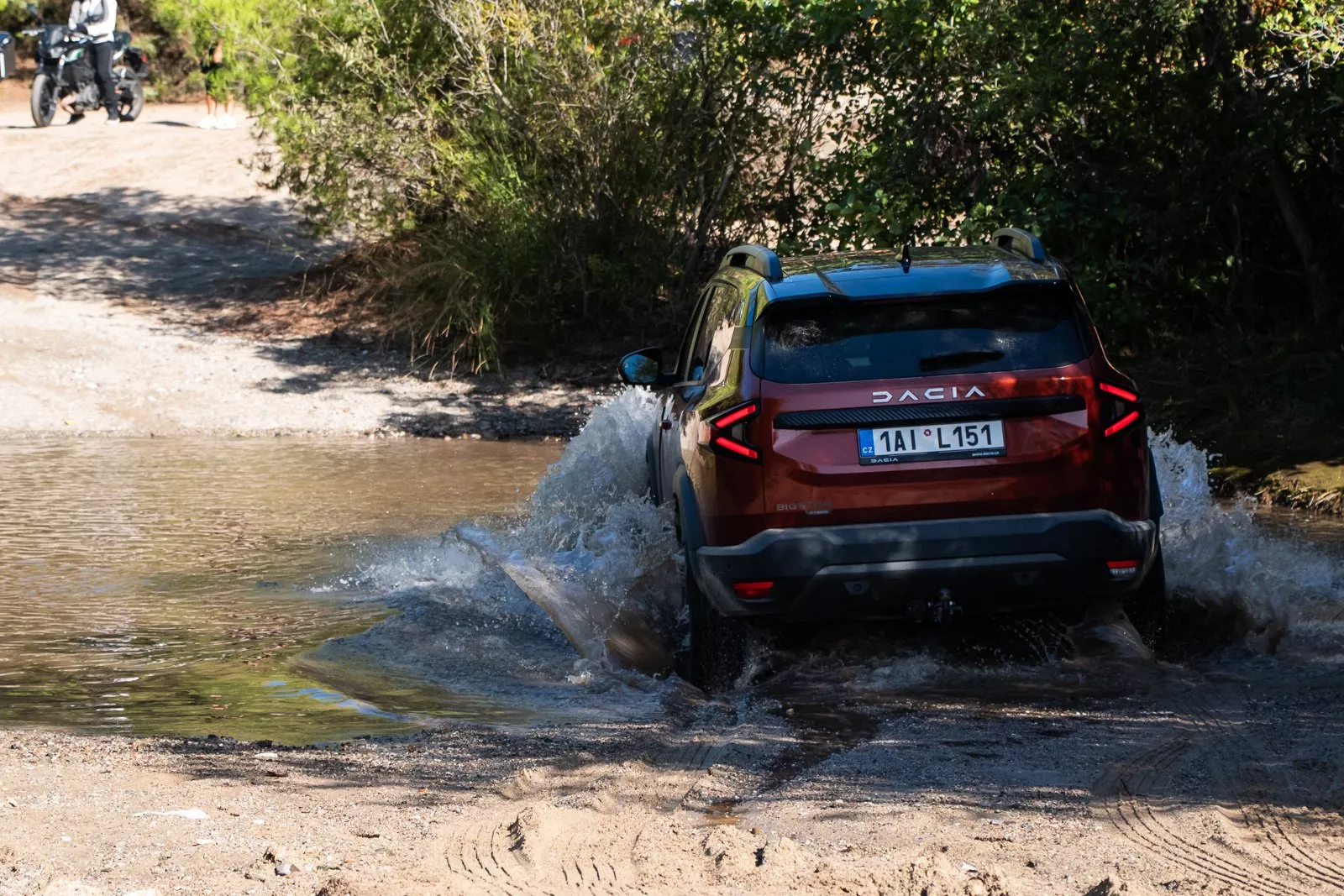 Brod to není hluboký, v době naší návštěvy měl asi 20 cm, pokud to vezmete při kraji, ale pod vodou je dost kamenů. Bigster to zvládl bez zaváhání i s pohonem předních kol, ale nižší auta by právě kvůli kamenům mohla mít problém, stejně jako motorkáři.