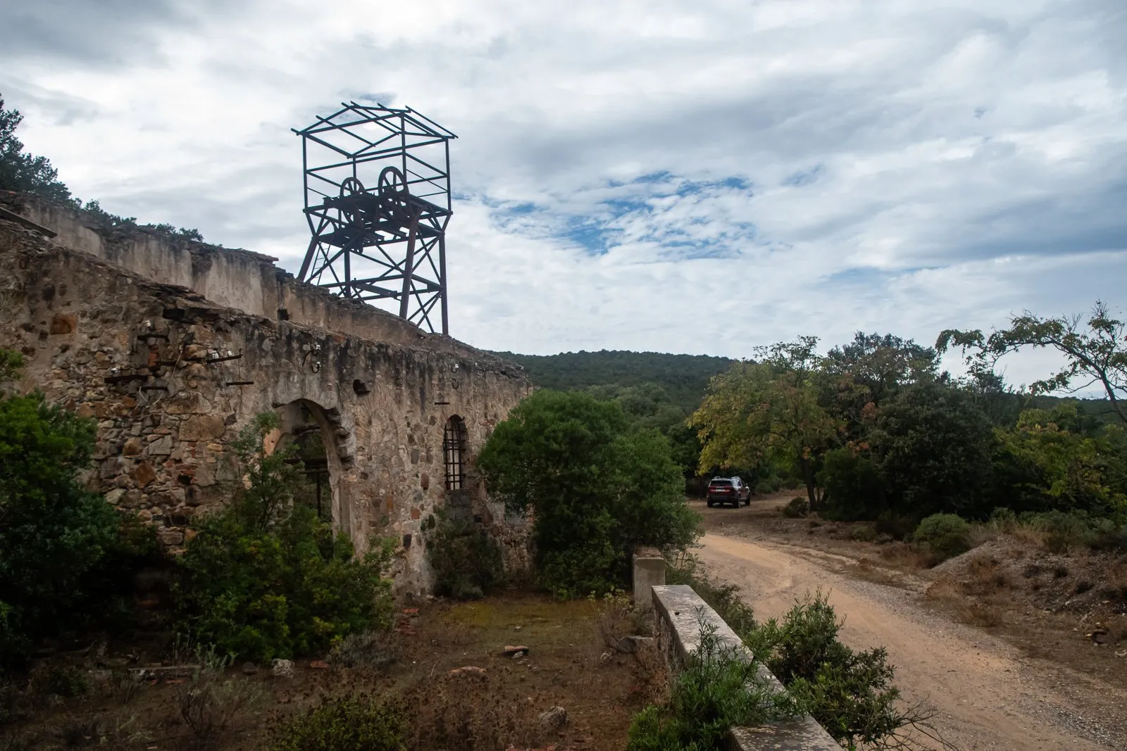 Takže jsem pokračoval. Později jsem narazil na dvě místa, která už byla hodně na hraně a kde už ono Picanto určitě nejelo, ale vracet jsem se nechtěl. Navíc podél trasy byla řada zajímavostí a vůbec celé okolí vypadá zajímavě. Je to opuštěný kus Sardinie, nikde nikdo, jen lesy, dole pod vámi přehrada, rozpadající se budovy a sem tam nějaký ten důl. Jeden z těch nejhezčích je Pozzo Amsicora.
