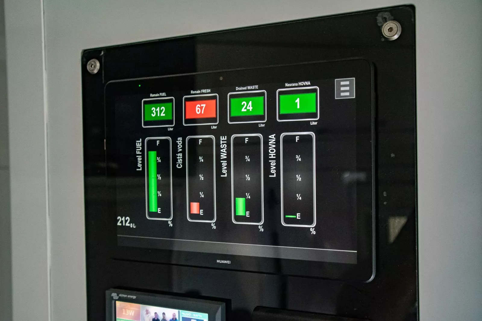 Kompromisy se zde nedělají také kvůli technické stránce věci. Prakticky na celé střeše nástavby jsou solární panely disponující výkonem 2 kWp. Nástavba má 15kWh palubní baterii a obvykle se při běžném provozu nevybije pod 70 %, protože soláry to zase ráno velmi rychle dobijí. Je tu klimatizace, vodní topení, vzduchové topení, 450litrová nádrž na vodu, systém filtrace na pitnou vodu, 100litrová nádrž na šedou vodu, 80litrová nádrž na černou vodu (toaletu), 2kW naftový generátor, dvě nádrže na plyn a tak dále.