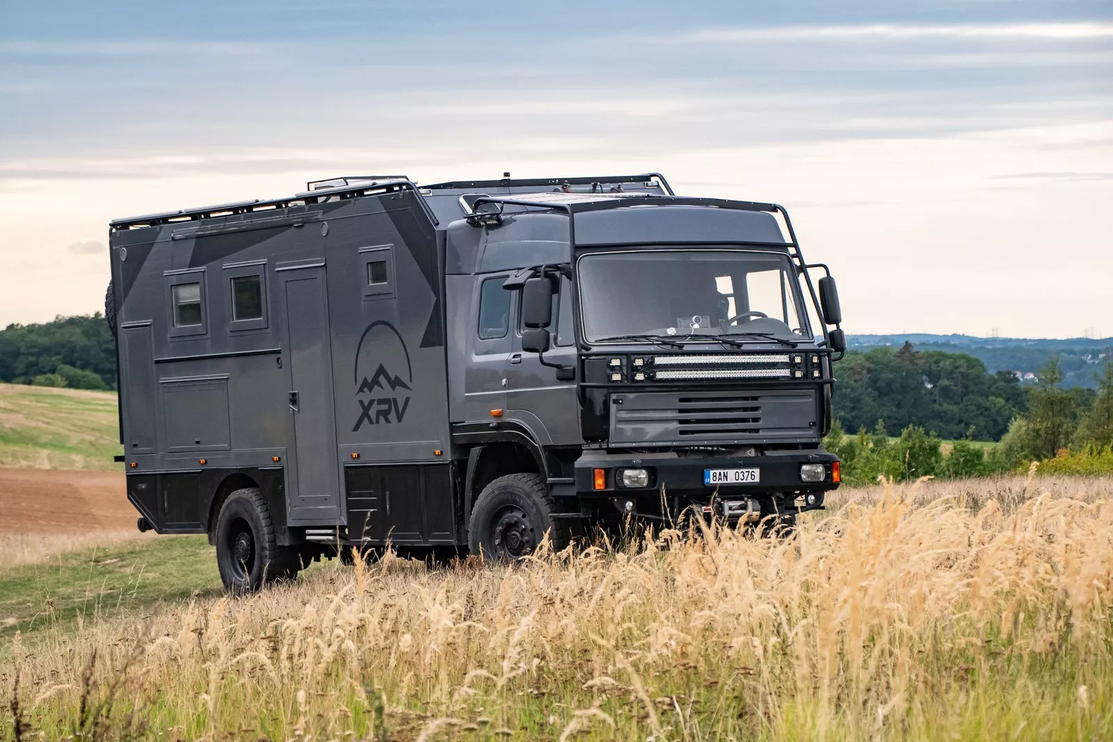 Obytný Liaz v době naší návštěvy parkoval v Dolních Břežanech kousek u Prahy v tak trochu zapadlém areálu. Právě zde sídlí společnosti XRV Adventures, která tady obytná auta také staví. Už od pohledu zajímavě vypadající Liaz stál u zrodu této společnosti. Přesně řečeno to bylo jedno z prvních aut, které postavil David Císař, spolumajitel XRV Adventures.