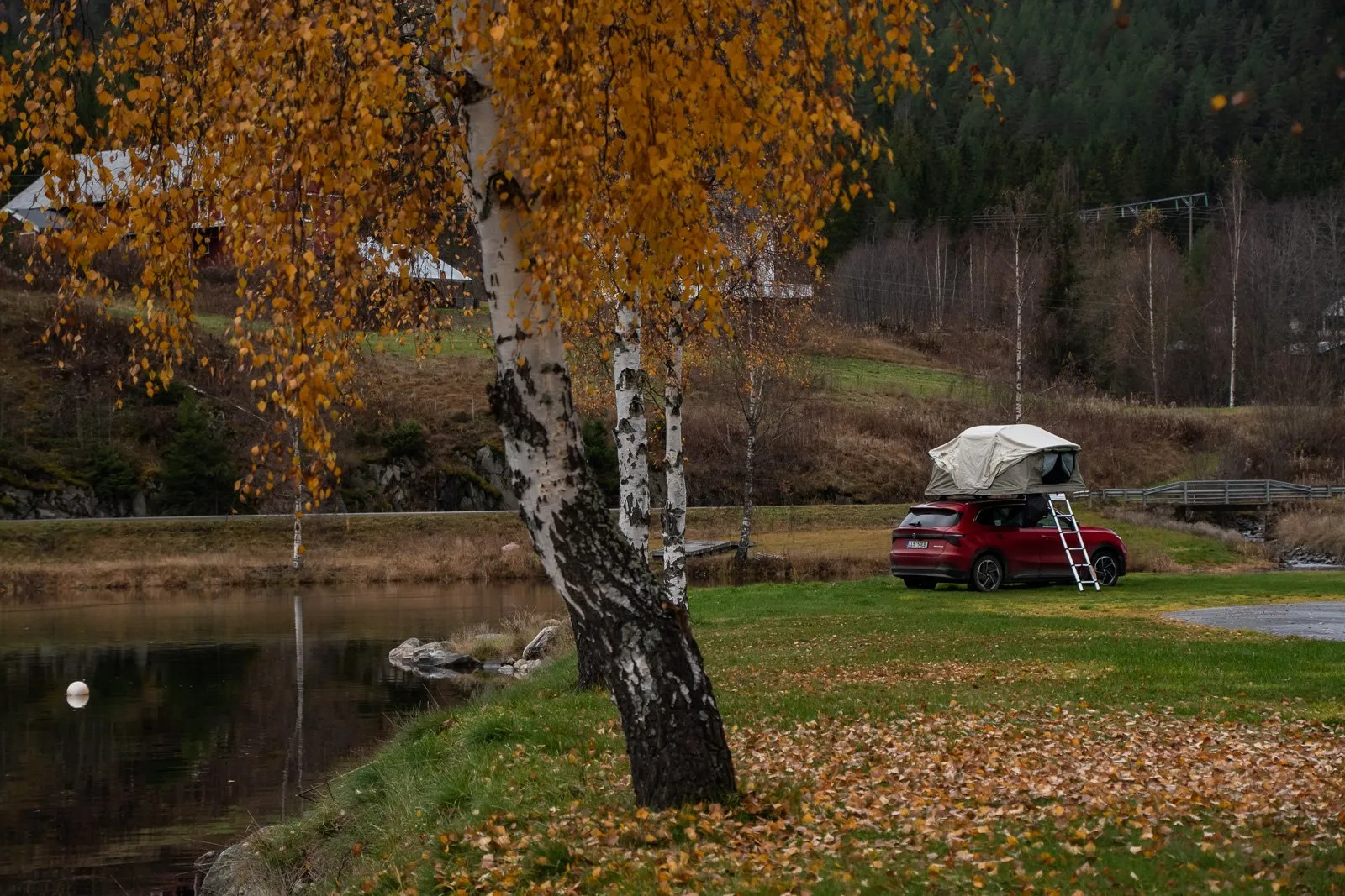 Ok, plán bychom tedy měli. Po nekonečně dlouhém přejezdu z Trelleborgu jsem zakempoval ve městě Aurdal. Schválně jsem stál v kempu, abych měl jistotu nějakého zázemí a schválně jsem si nevzal elektřinu, abych si vyzkoušel, jak bude fungovat topení z baterky našeho MGS5 EV. Stan Thule Approach sice dostal dovnitř jednu vrstvu navíc (termovložku), ale teploty v horách měly být i kolem -10 °C a bez nějakého topení by asi byla trochu ziminka.