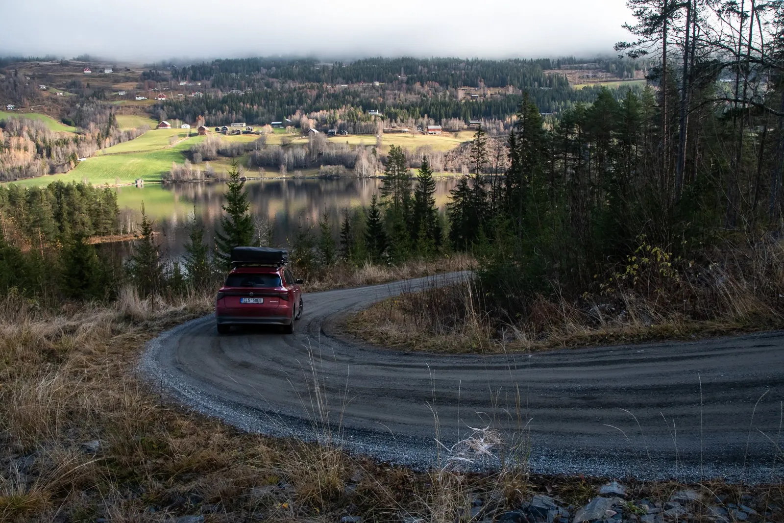 Silnice pozvolna stoupá a spolu s tím klesala teplota i dojezd elektrického SUV. Obavy o to, že člověk zůstane někde trčet, ale nejsou na místě. Tady jsme v Norsku. V zemi elektromobilitě zaslíbené. Dopředu jsem věděl, že nabíječek i zde na této silnici je dost, včetně těch rychlých. Pravdou ale je, že auto „žralo“ více, než jsem předpokládal. Důvodem byla zima (tedy topení) i stan na střeše. Po cestě jsem se zastavil ještě u kostela Hegge stavkyrkje a za velkým střediskem Beitostølen, které vypadalo v době návštěvy dost opuštěně, to začalo být opravdu zajímavé.
