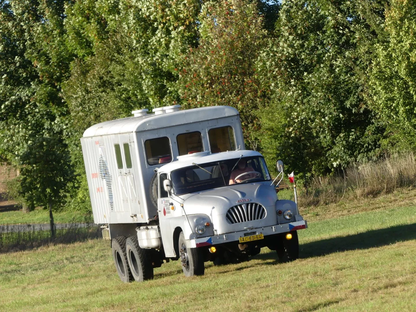 Modul na Lambádě ovšem představuje „jen“ upravená nástavba z Pragy V3S, ale pokud nemáte po ruce srovnávací fotografii či původní cestovatelský speciál, je skříň na Lambádě doslova „klamák“. Obsahuje i repliky původních popisů a grafického dekoru i dvojici oken v přední části nástavby.