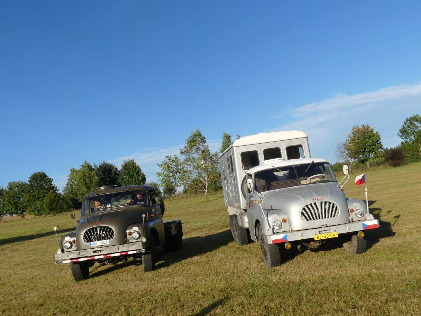 Cesta za Lambádou nebyla jen tak obyčejná. Využili jsme totiž možnost návštěvy přátelského setkání party kolem historických náklaďáků. Luděk Šimůnek nacvičeným pohybem usedá za volant, osmiválec s výkonem 180 koní okamžitě naskakuje a Lambáda vyjíždí.