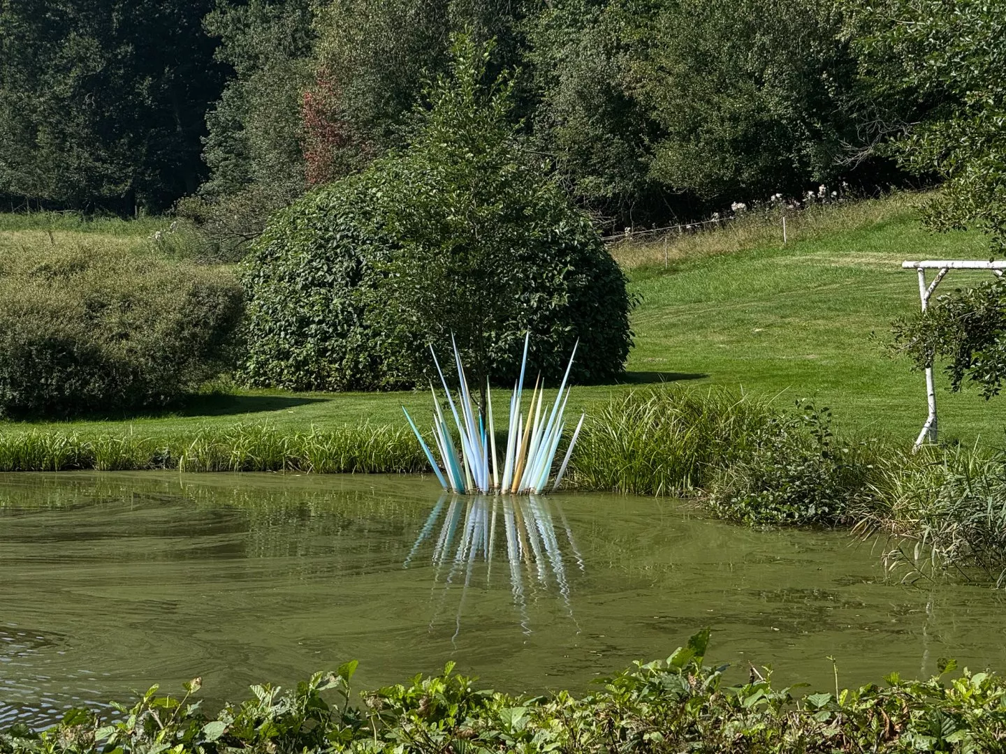 Do sklárny Ajeto, která patří do skupiny Lasvit, jsem dorazila dopoledne a parkoviště už bylo poměrně plné. Nebyla to auta pouze zaměstnanců, ale také návštěvníků. Mohou si prohlédnout dílny, zkusit si vyfoukat sklo, najíst se v místní krčmě, nebo se projít po zahradě plné skleněných instalací.