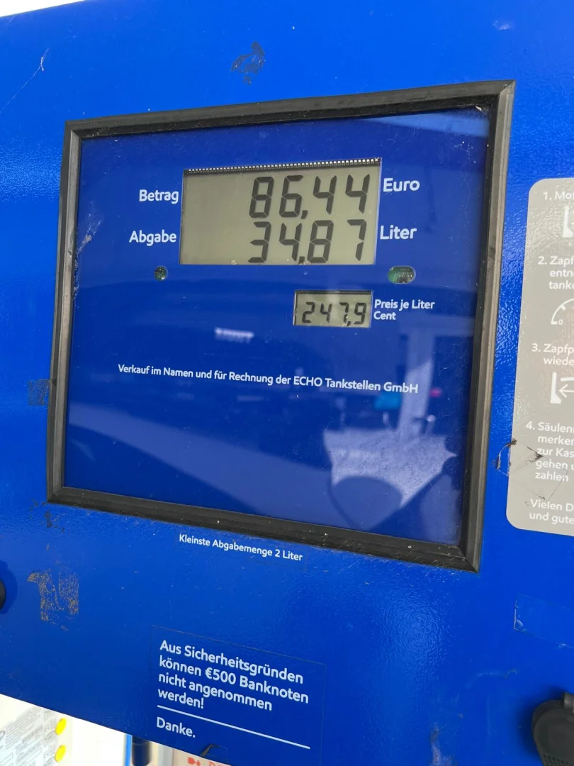 Po cestě zpět ale cena ještě vzrostla. V sobotu 7. března jsme opět na německé dálnici kousek nad Berlínem museli brát plnou a místo dvou euro už byla cena za Super E10 dokonce 2,479 eur/litr. V přepočtu to znamená, že nás litr paliva stál už více než 60 Kč (přesně to je 60,44 Kč). A takové tankování opravdu začíná bolet. Na dálnicích je palivo pochopitelně dražší, nicméně i zhruba deset kilometrů od dálnice v menší vesnické čerpačce stojí benzin v Německu pořád zhruba 50 Kč/l.
