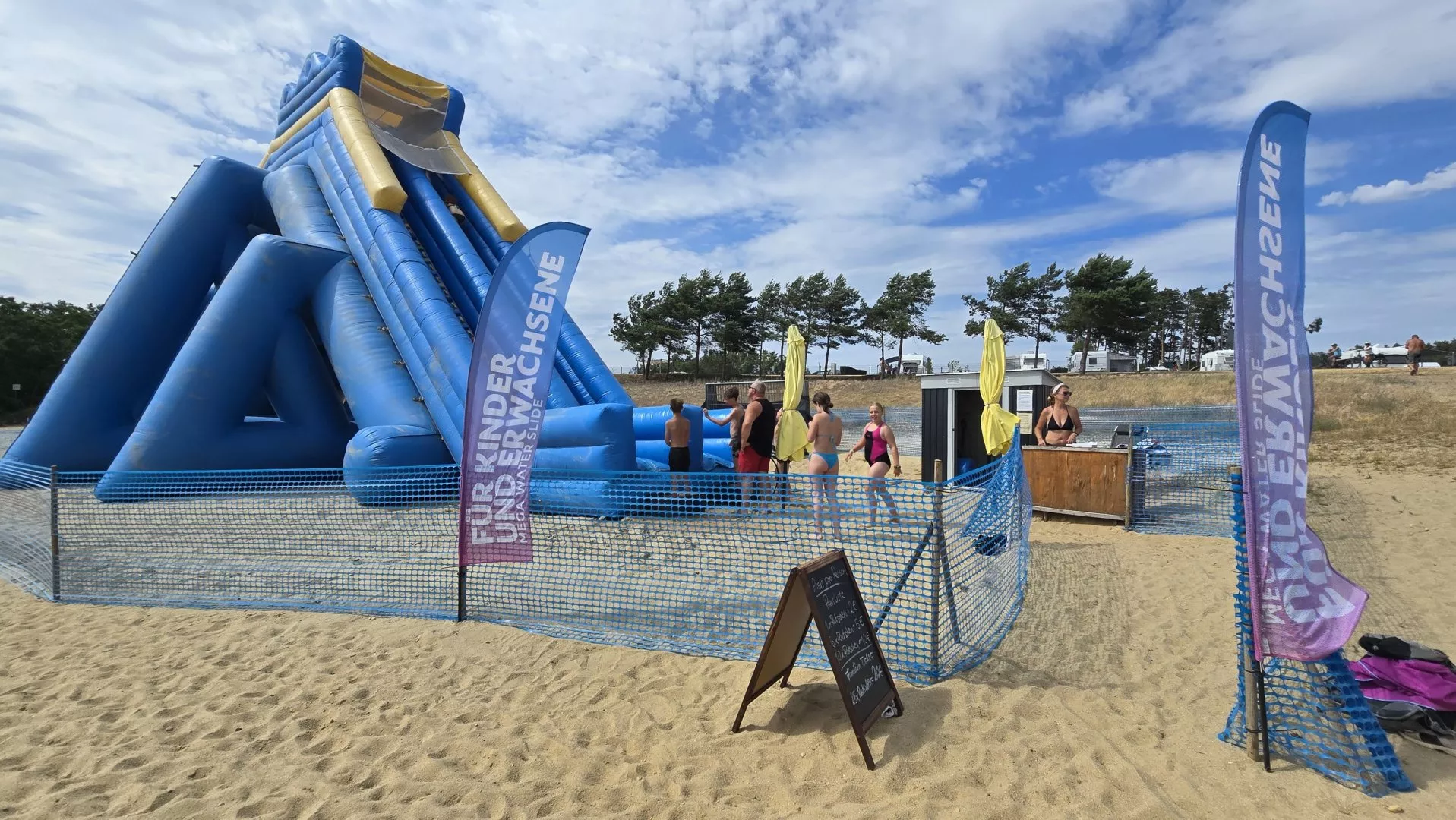 Kdo si chce vyzkoušet bruslení na závodním oválu, ten má právě u Boxbergu možnost. Na dvousetmetrový okruh se dá najet přímo ze stezky a můžete si tady třeba ve vaší partě mezi sebou zazávodit. Vyblbli jsme se i na největší pláži v okolí Boxbergu, která s přimhouřenýma očima připomíná pláž středomořskou. Můžete mít i pěkné vlny, pokud fouká. Čistá voda měla příjemných 23 stupňů. Vyzkoušeli jsme i adrenalinový zážitek v podobě obří gumové skluzavky. Jízda za ta dvě eura stála. Mimo sezonu ale samozřejmě s takovým vyžitím nepočítejte.
