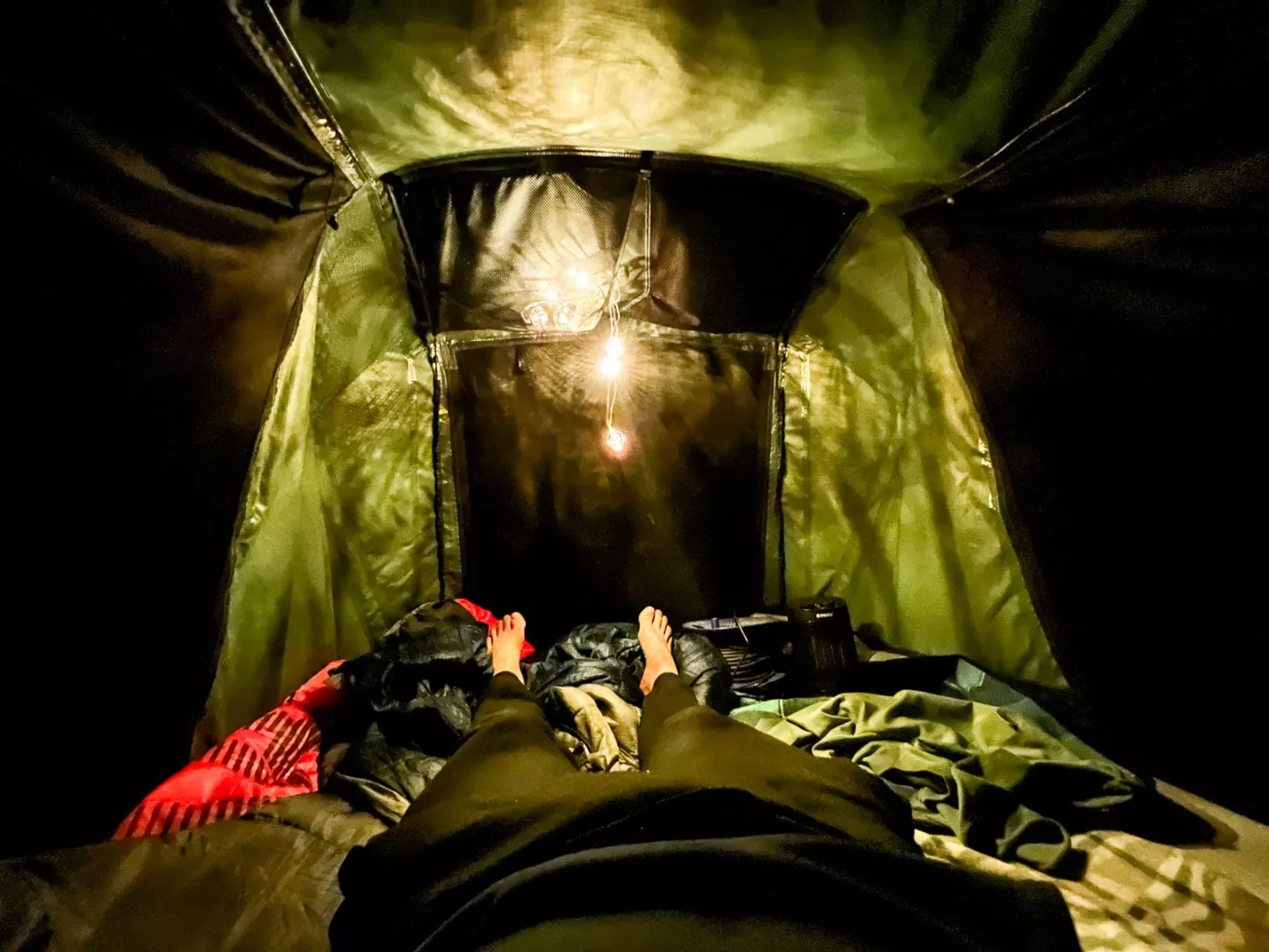 S sebou jsem si také vezl elektrický fukar, který jsem si na internetu našel a zakoupil jako věc určenou přímo pro vytápění stanů. Takže když jsem to doma rozbalil, tak tam samozřejmě hned bylo upozornění, že se to nesmí používat nikde, kde by od toho mohlo něco chytnout. Jako upřímně si nejsem zcela jist, jak to teda jde dohromady s nabídkou topení do stanů.