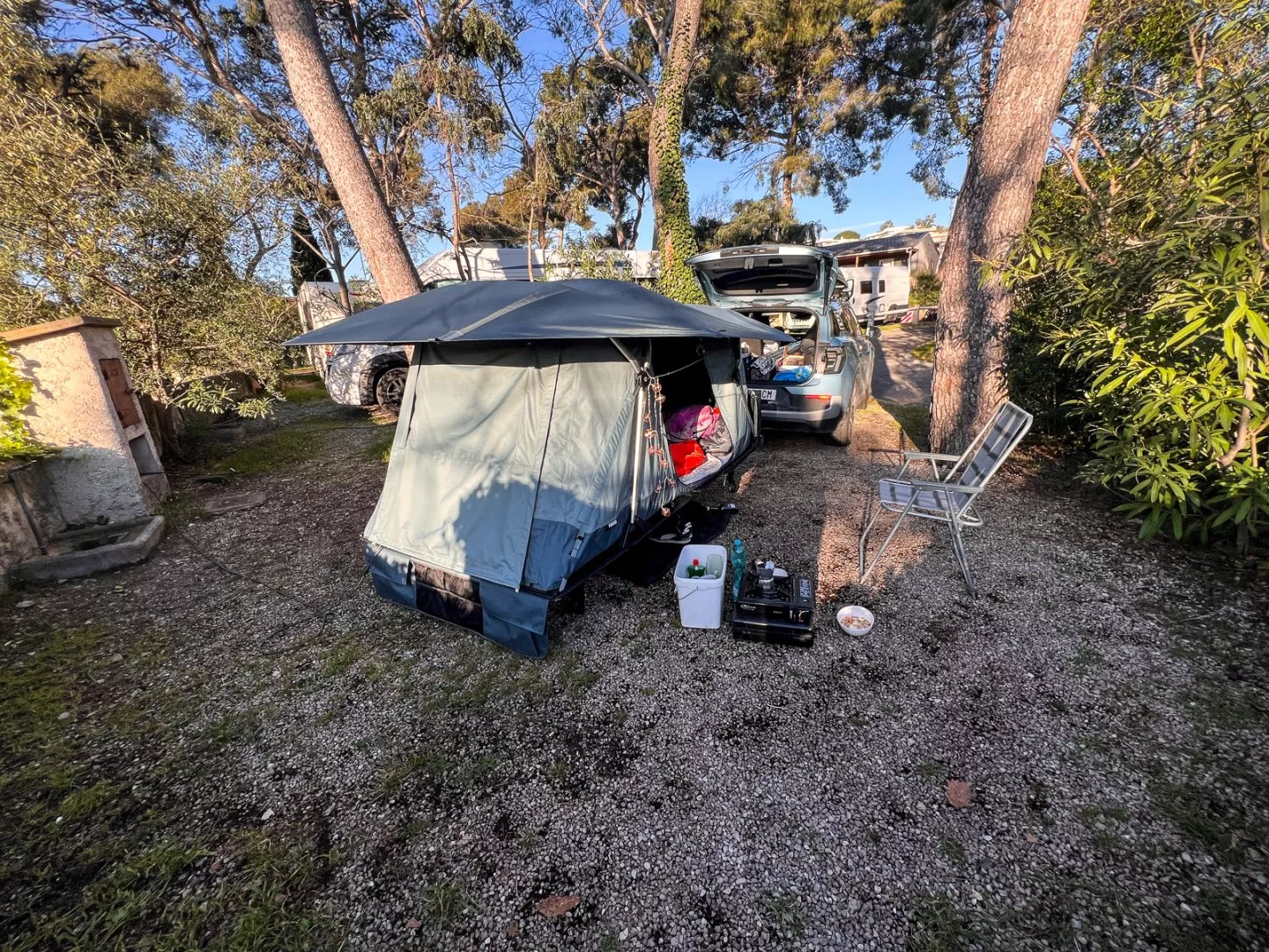 Z tohoto důvodu jsem tohle topení nechtěl nechávat zapnuté, když spím. Na večerní ležení ve stanu ale bylo super. Relativně malý prostor vytopilo hned. Zhruba čtvrtý den se mi stalo, že jsem nechtěně usnul a topení běželo celou noc. Nic neshořelo a tak jsem od té doby topení takto používal furt. V jižních částech Evropy samozřejmě přes noc mínus deset nebylo, ale kromě jihu Francie se vždycky, když zalezlo slunce, okamžitě udělala zima a topení se hodilo.