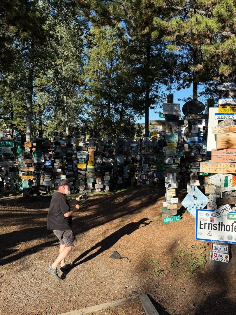 Tohle město je vlastně taková díra, kde vlaje spousta vlajek a nechybí ani ta česká. I proto tu tu dost možná potkáš českého kámoše a hlavně je tu také les značek. Kdysi tady jeden voják přibil ceduli s nápisem, jak daleko je jeho domov. A tak vznikla tradice, kdy sem lidé vozí různé cedule, registrační značky a je jich tu neskutečné množství.
